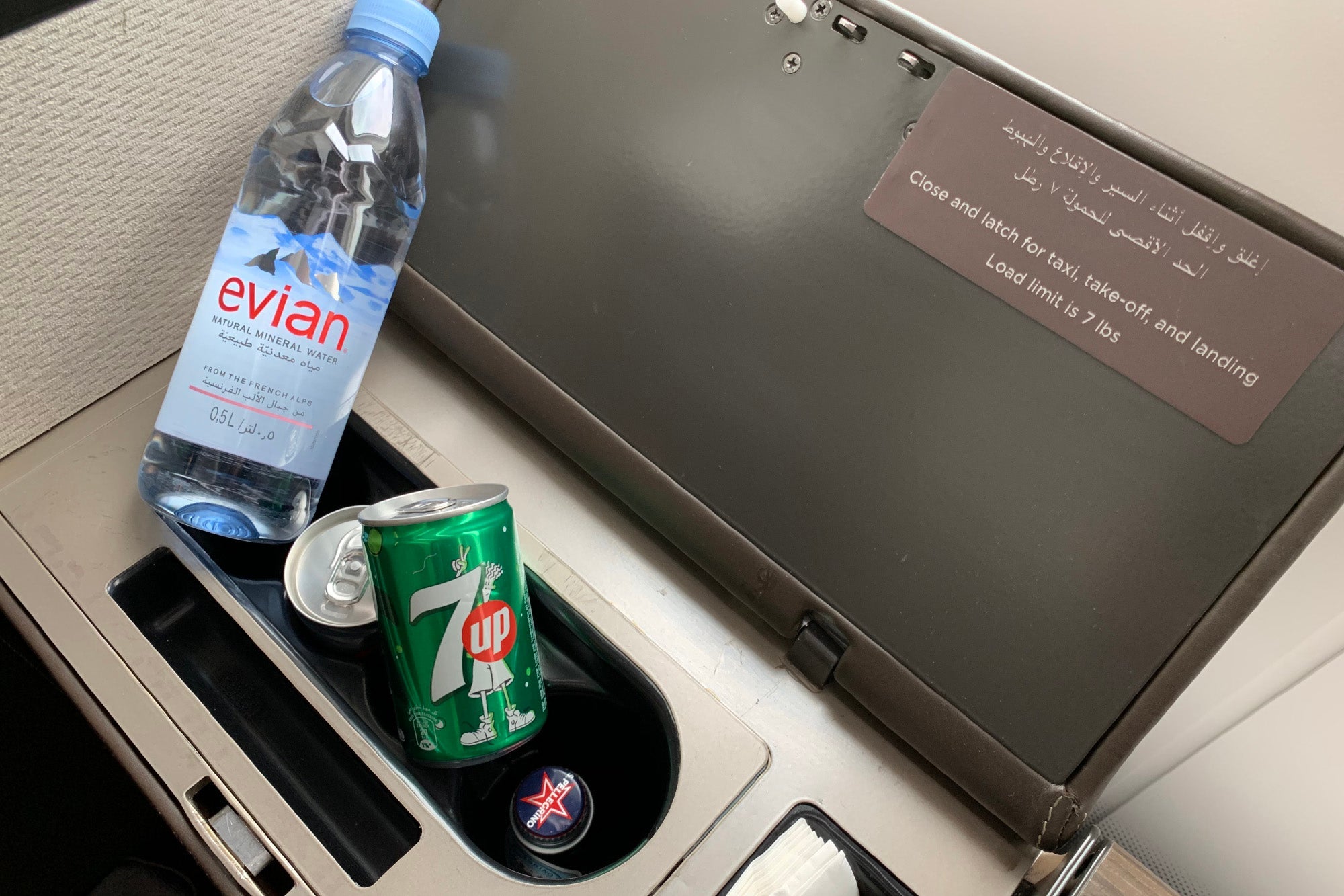 My first shot at a drink came moments after sitting down, as I explored the suite and discovered that what I thought was a storage compartment was actually a minibar. And, unlike on Emirates, this minibar was refrigerated, so all of the drinks were cool. Score!