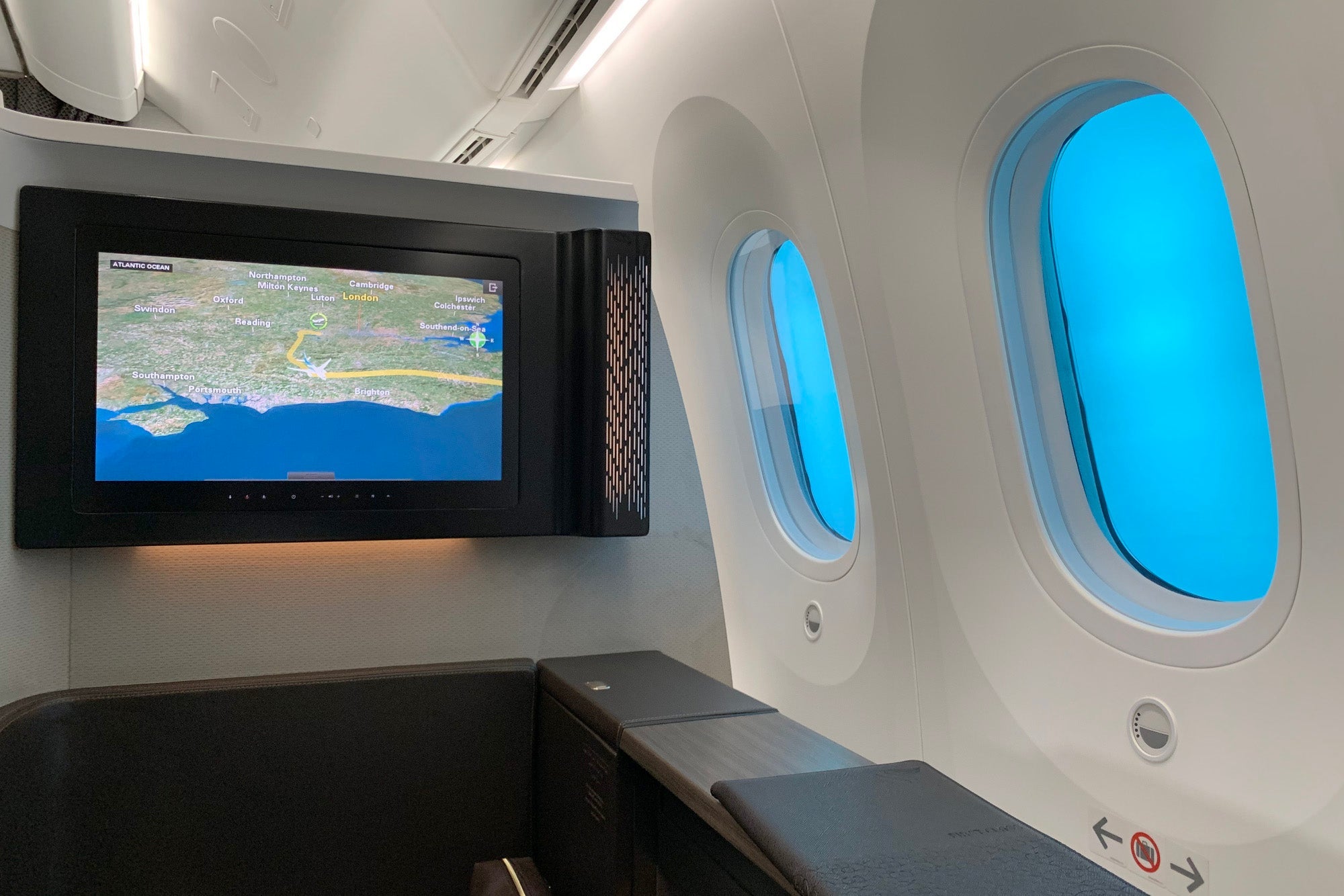 Center suites have a large middle partition as well, which you can raise if you end up sitting next to a stranger.