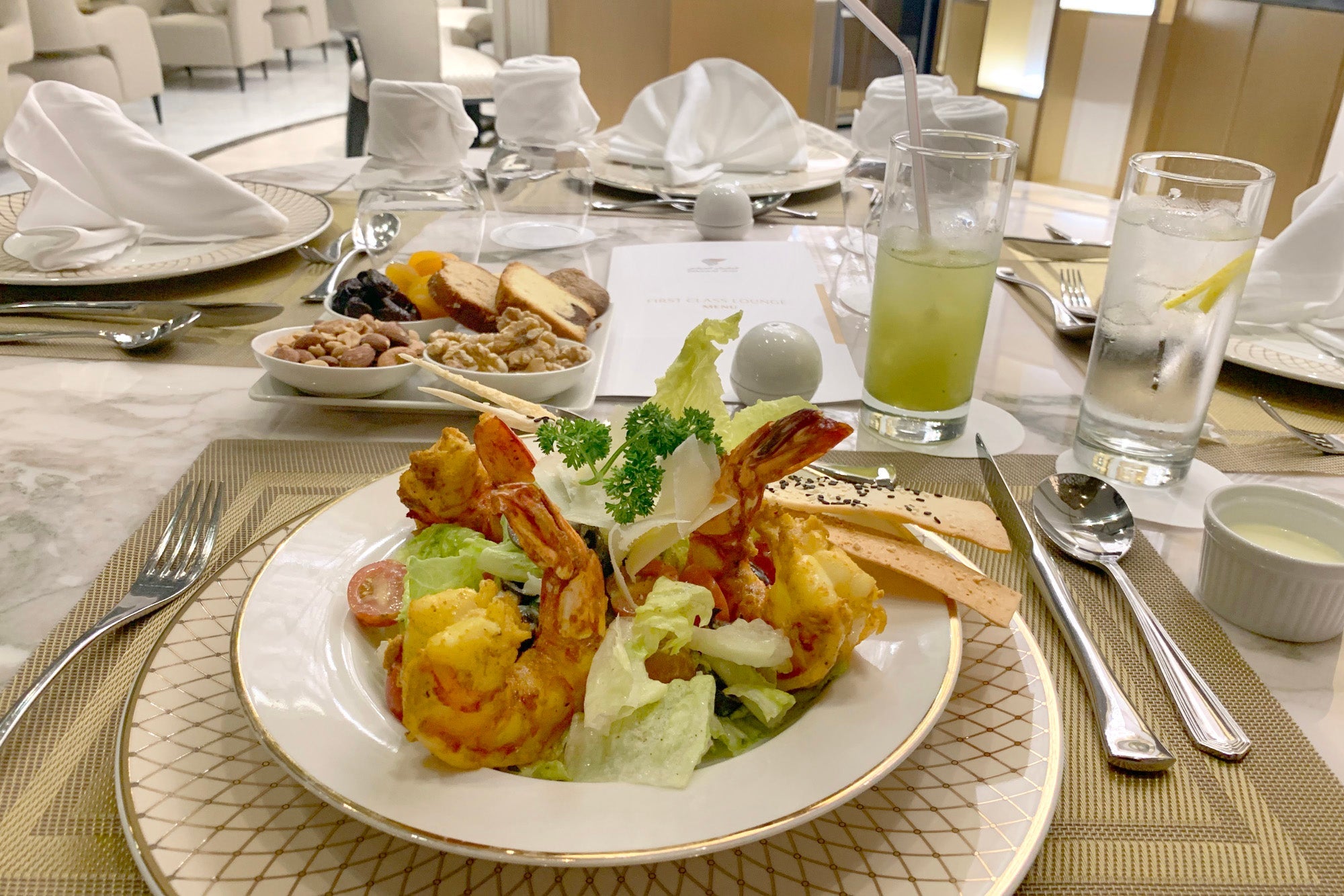I knew I'd be eating on the plane, but I was actually a bit hungry, so I made myself a plate. A waiter appeared almost immediately to offer a drink, and remained very attentive throughout my visit.