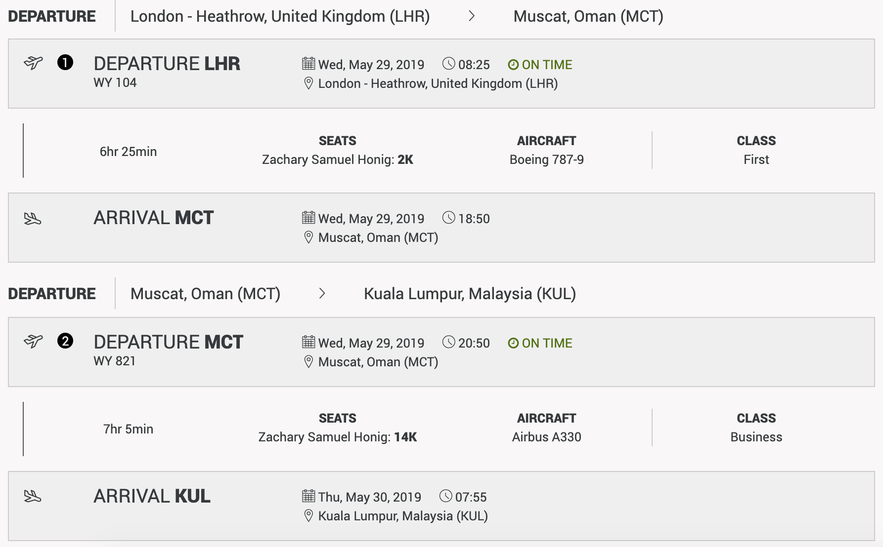While this was my first time on A40-SF, I'd actually flown Oman Air's 787-9 before, back in 2017 on a two-cabin configuration (with business and economy class).