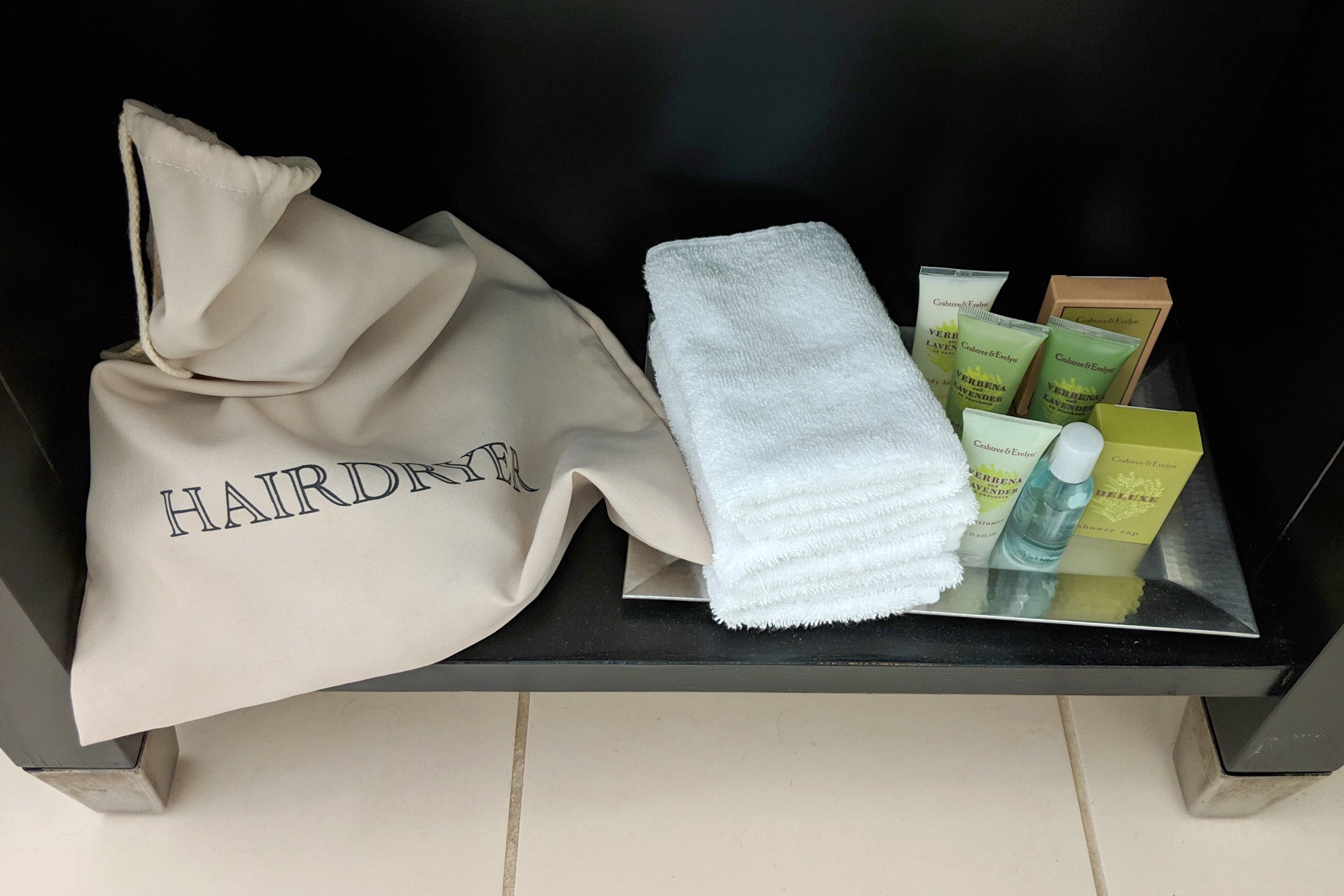 The hotel offered an array of Crabtree & Evelyn amenities, including soap, shampoo and body lotion, plus a hair dryer and plenty of washcloths and towels.