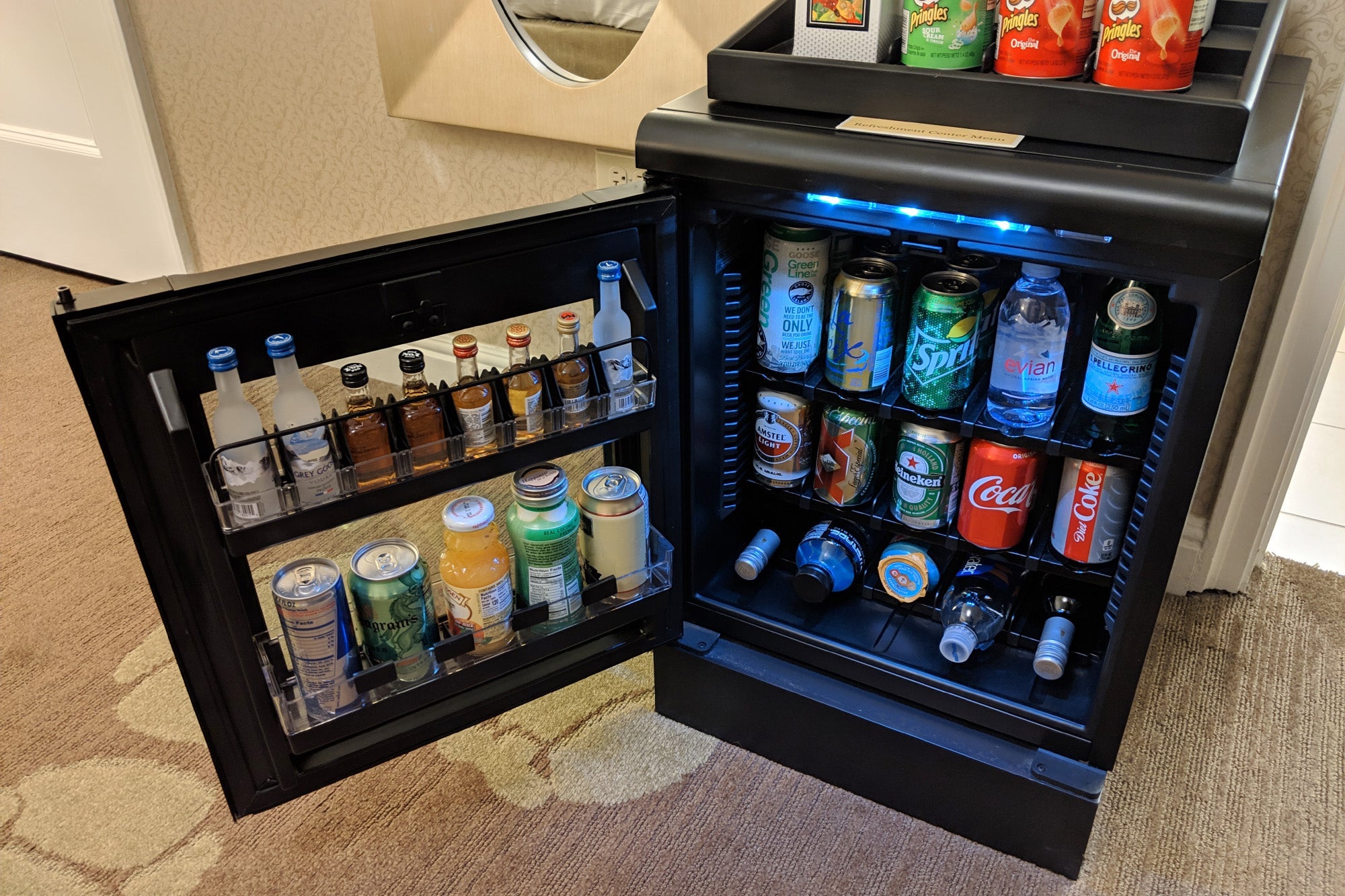 The room did have a well-stocked minibar. We ended up moving some of the snacks around to make room on top before noticing the automated sensors, but never ended up getting hit with a charge.