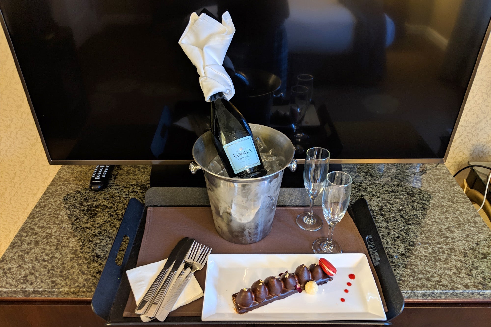 Despite receiving confirmation in the app, our "Champagne" and chocolate-covered strawberries weren't in the room as I expected and weren't delivered later in the night. After a couple of follow-ups they finally showed up the next day, but with prosecco, instead of Champagne. While I normally wouldn't complain about not receiving an amenity that isn't guaranteed, I was excited about surprising my girlfriend on Valentine's Day, so I was bummed that the spread hadn't arrived as promised.