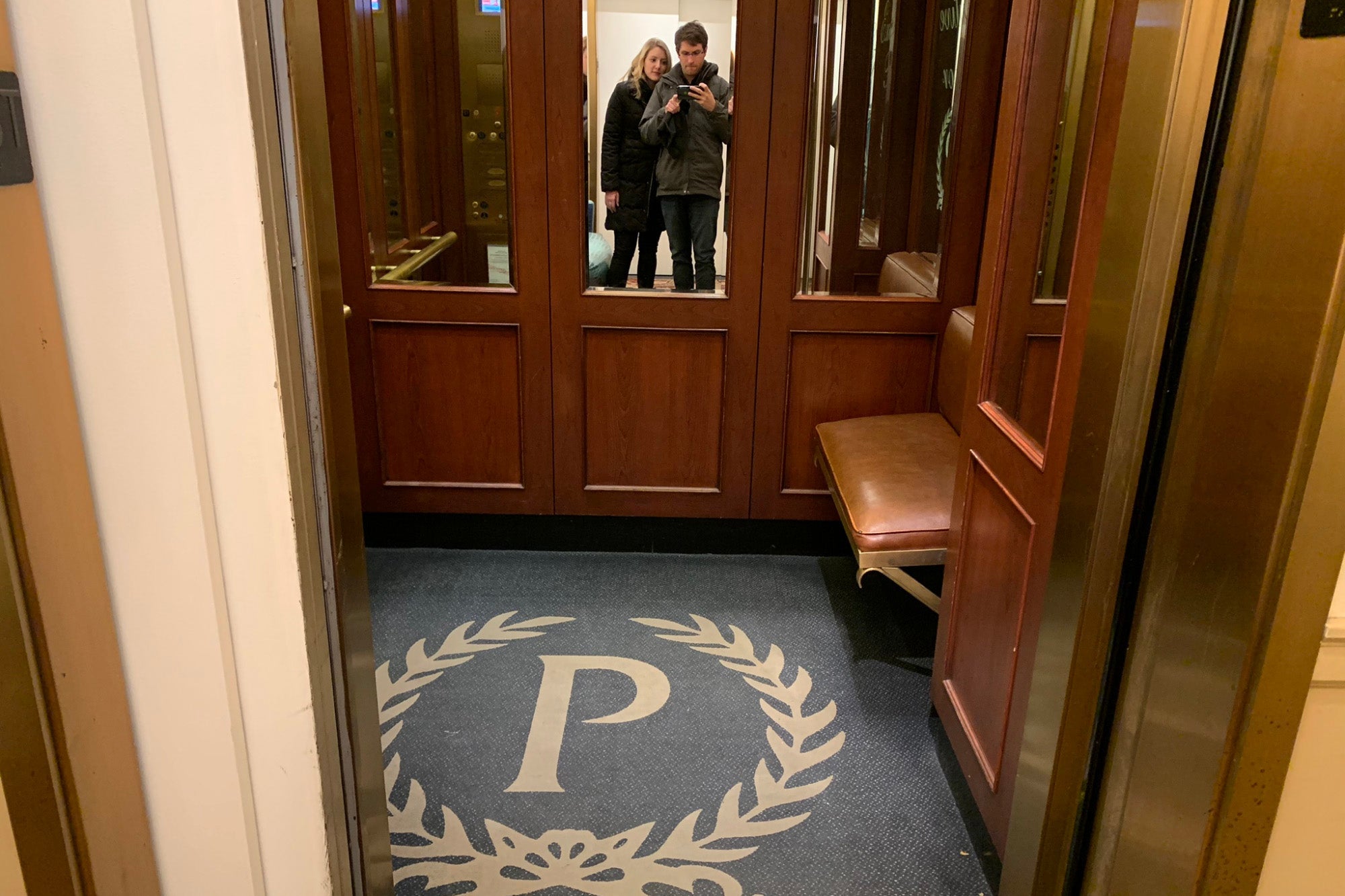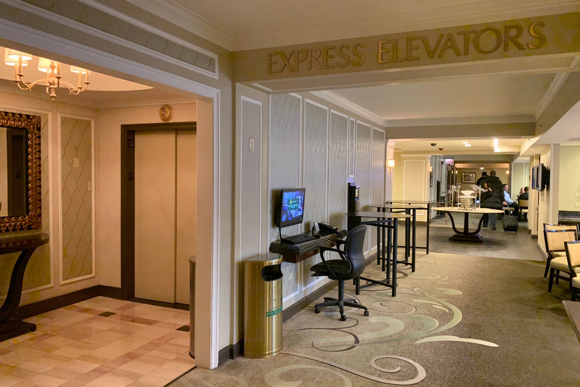 As an executive-level guest, we had access to special express elevators. They were pretty funky — there was even a leather bench!