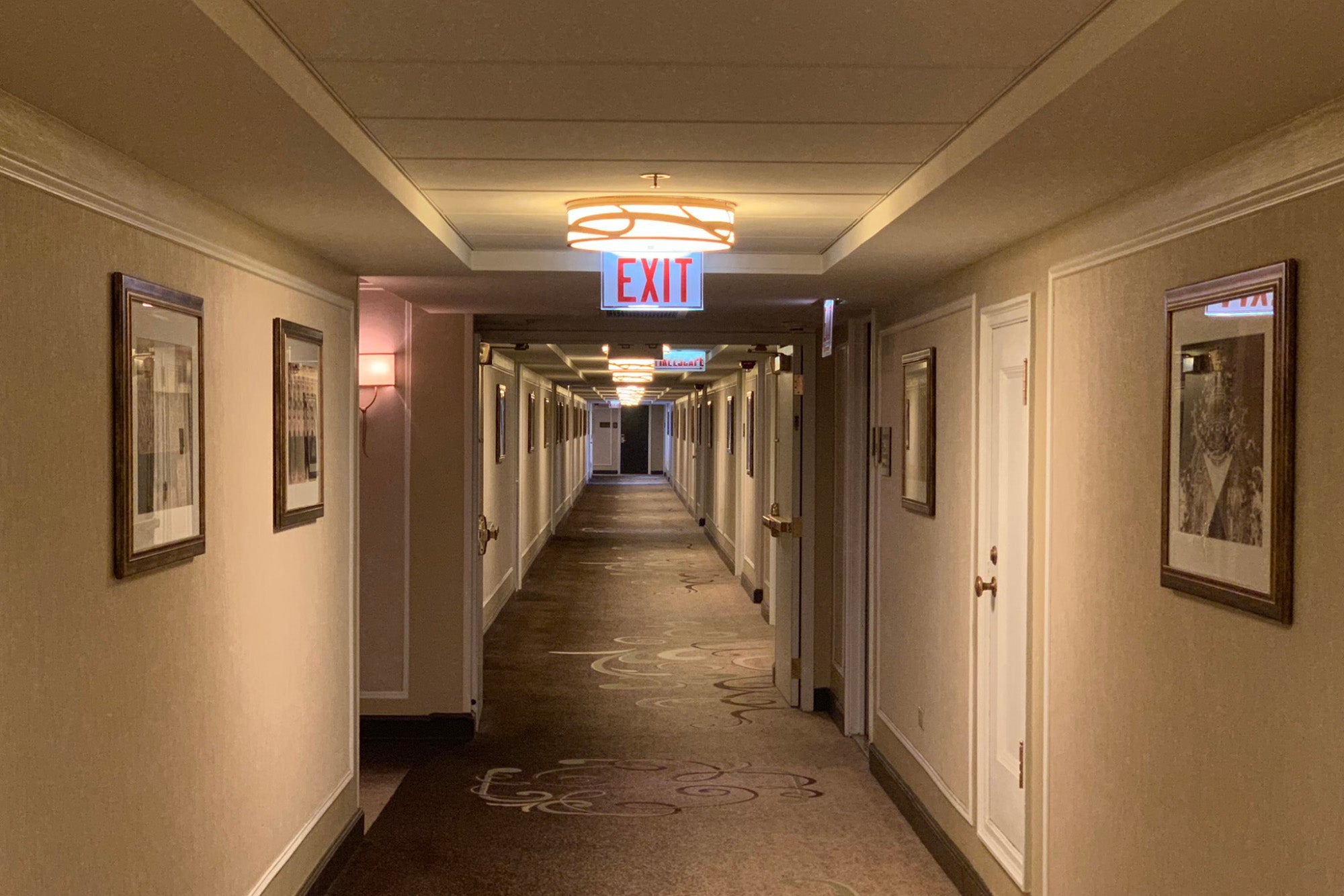 The hotel's majesty diminished once the elevator doors opened up, leaving us in a long hallway that felt anything but hip.