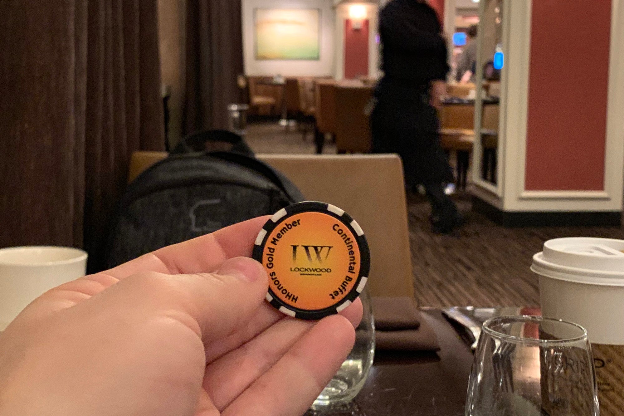 After checking my name off a list, the host handed me this fun HHonors Gold Member casino chip, which my server promptly collected before instructing me to head straight to the buffet.