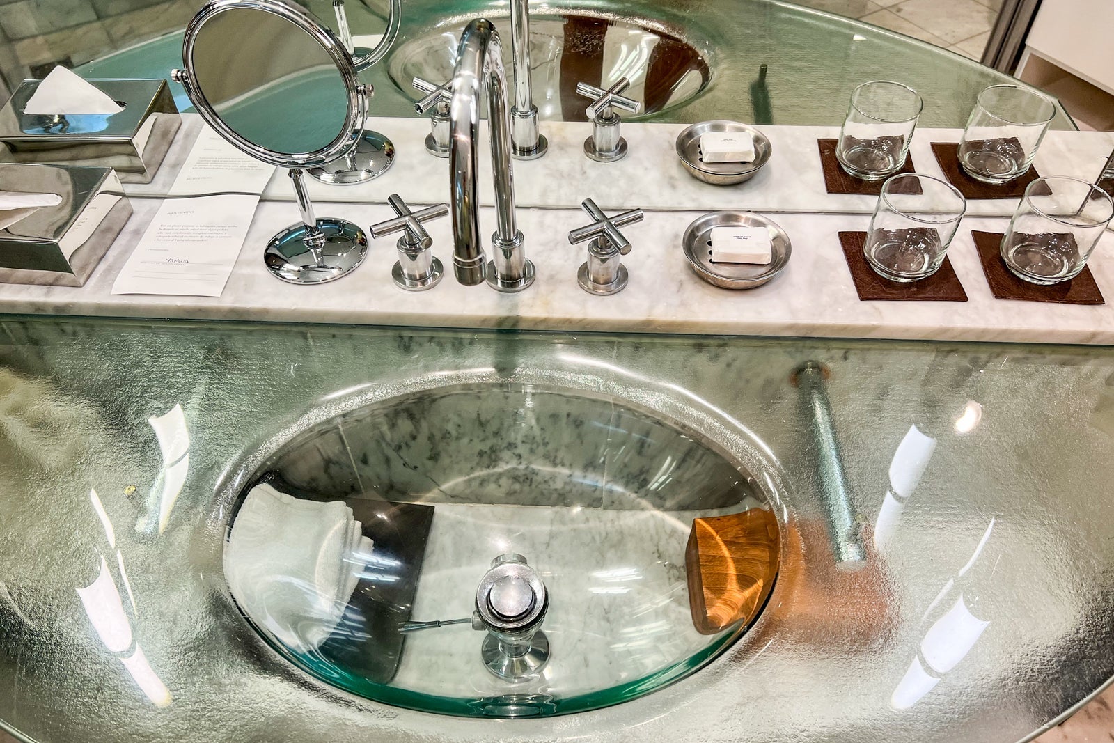 - My room had an oversize white marble bathroom that was large in comparison to the rest of the accommodation and stocked with tons of extra toiletries, fresh robes and plush slippers.
