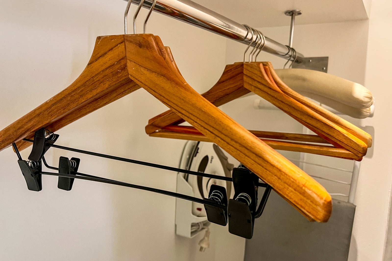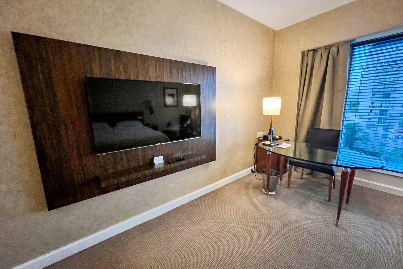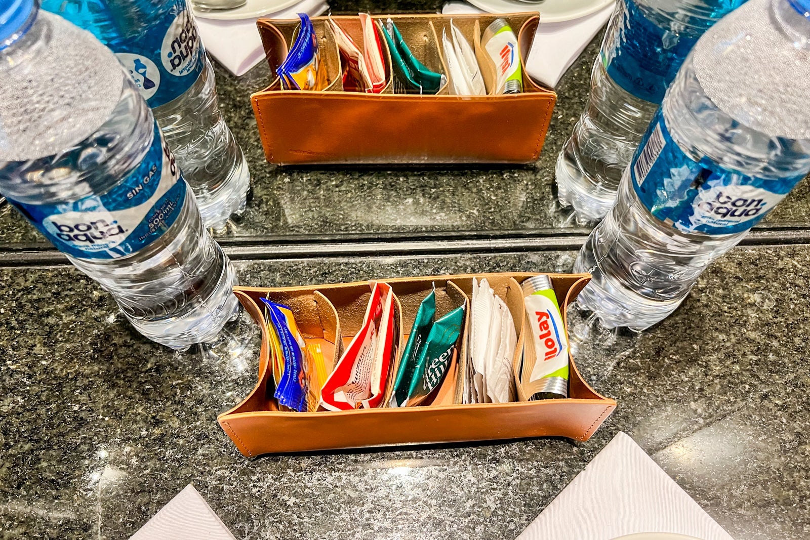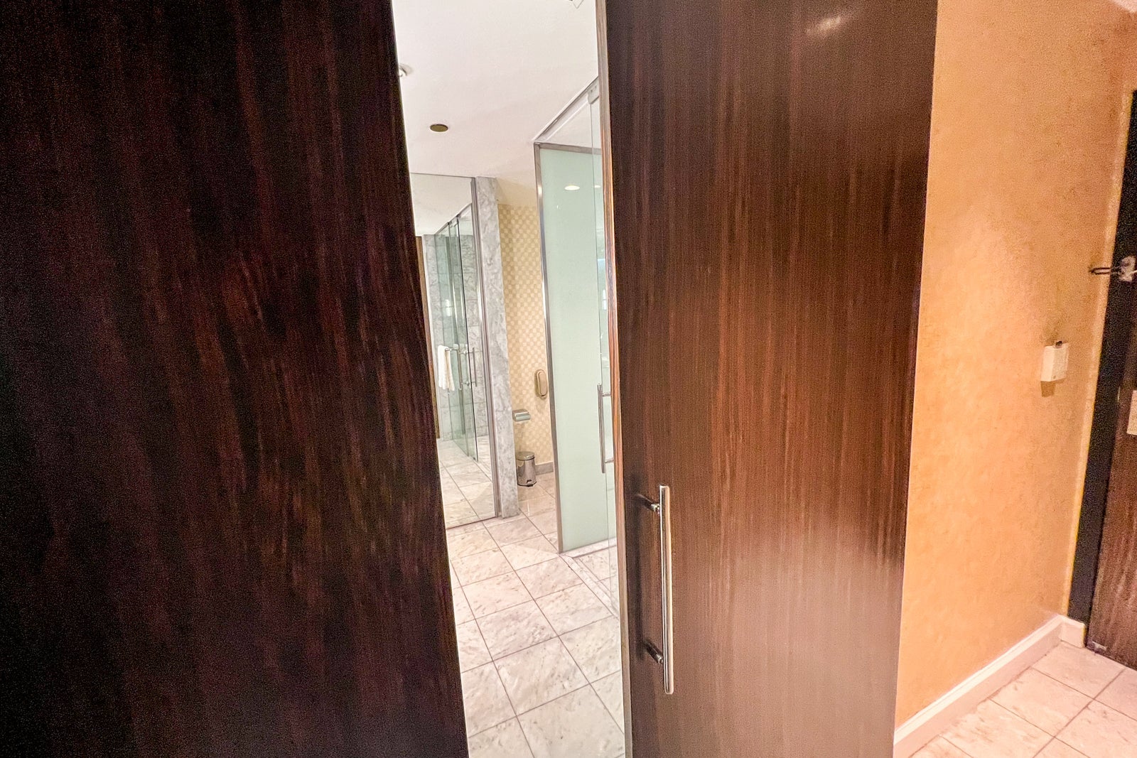 Further down the entry hall, a small cabinet held a hidden minifridge and a few other lackluster amenities, including small, complimentary water bottles along with instant coffee and tea packets. The lack of other snacks and drinks made this feel more like a budget motel than a Park Hyatt.
