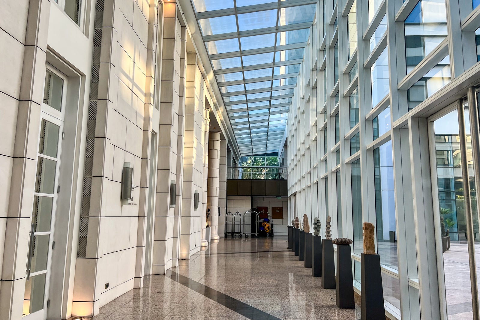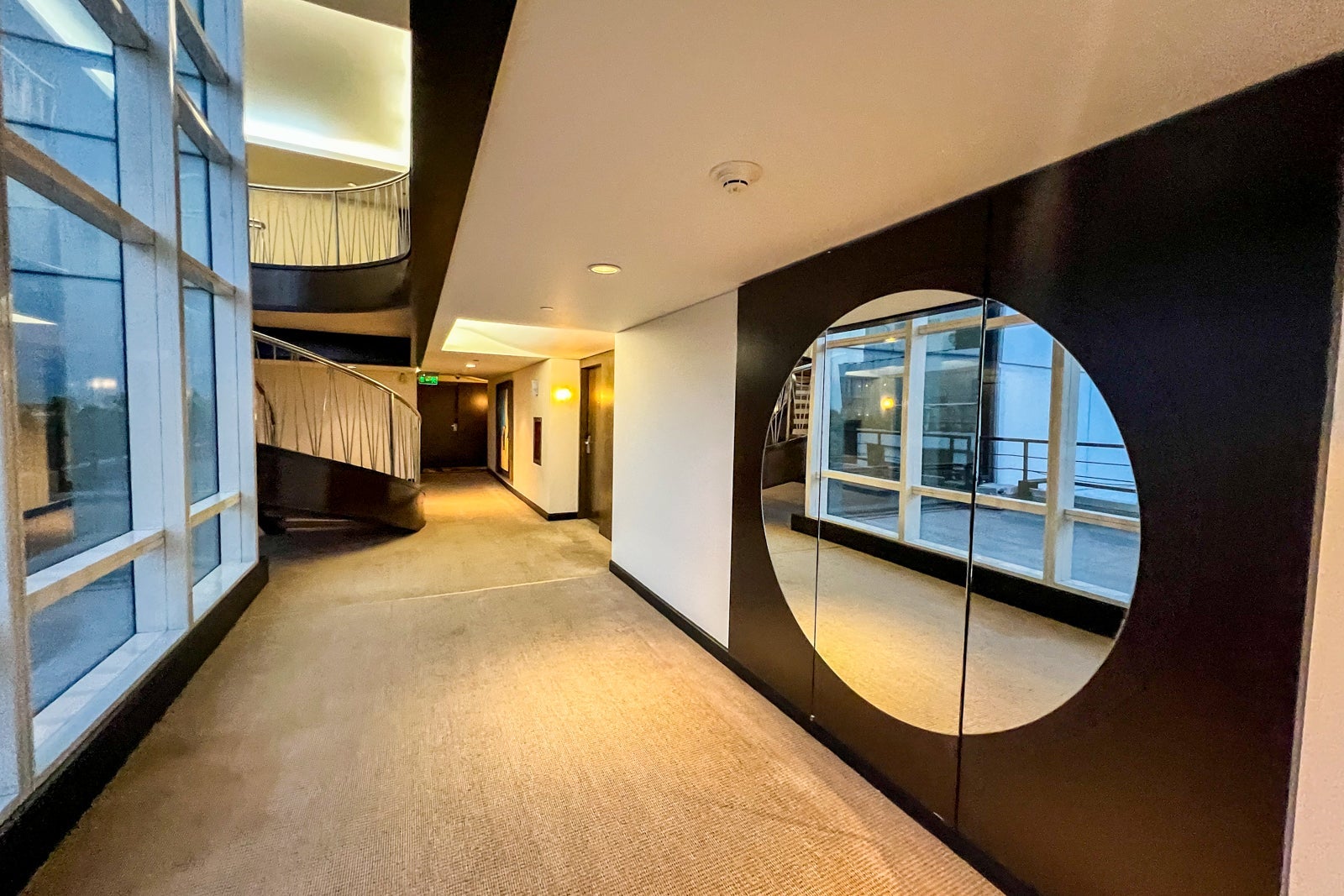 The hallways leading up to my room were wide, and the large windows provided great views of the city, which was nice because the corridors themselves were a bit bland.
