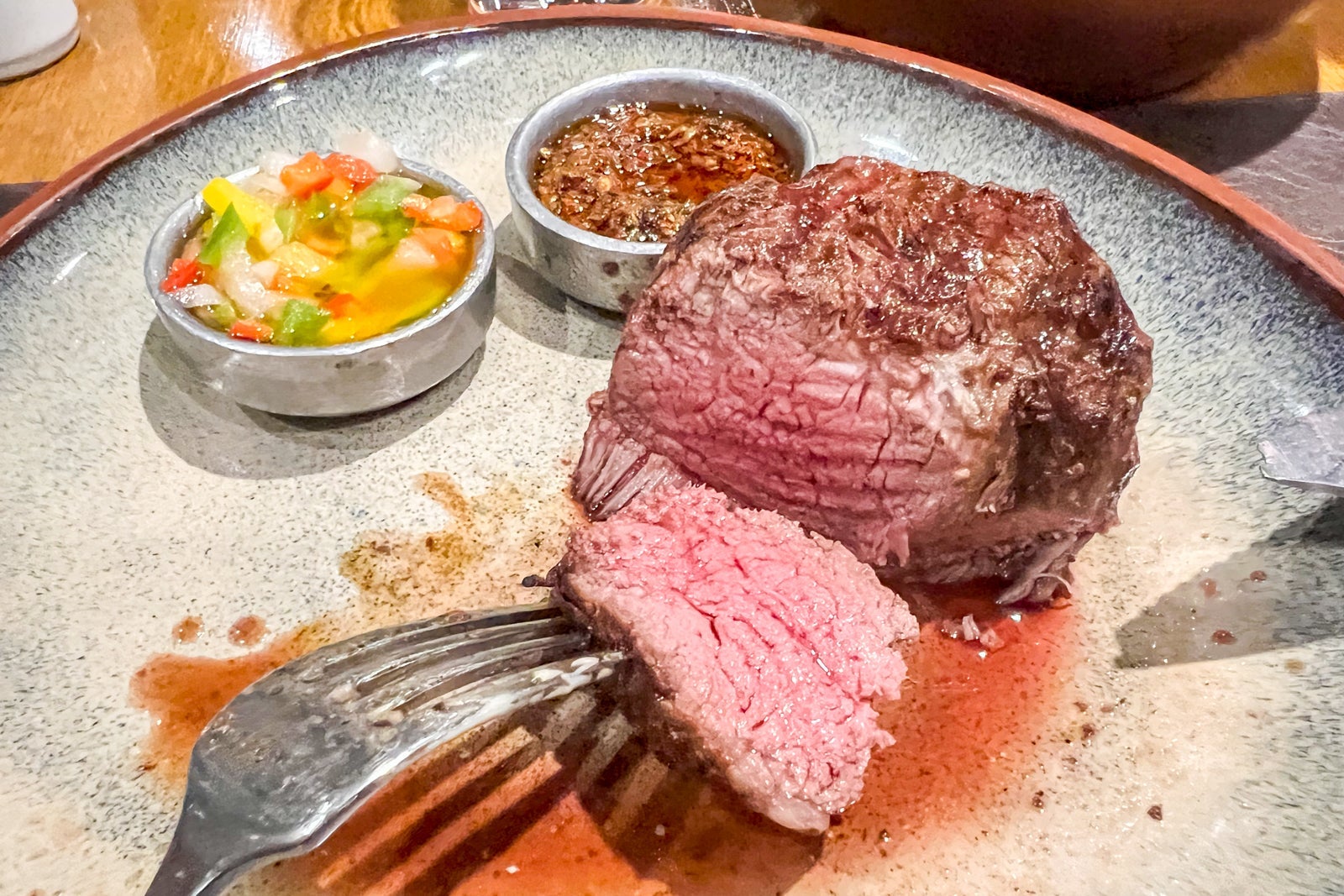 I enjoyed a classic steakhouse dinner on my first night at the Grill Q, the hotel's authentic Argentinian parrilla — and my tenderloin was cooked to medium-rare perfection. It was tender but not chewy, not to mention lightly salted to enhance the natural flavors of the meat. The chimichurri on the side was redolent with the flavors of olive oil, garlic, vinegar and chili — an excellent complement to the beef. A glass of Malbec was the obvious yet ideal pairing with the meal.