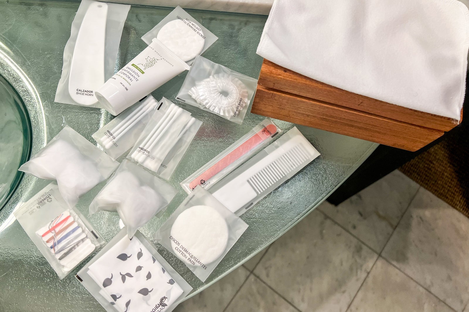 Toiletries were plentiful, though, and there was a sea sponge to use as a natural loofah.