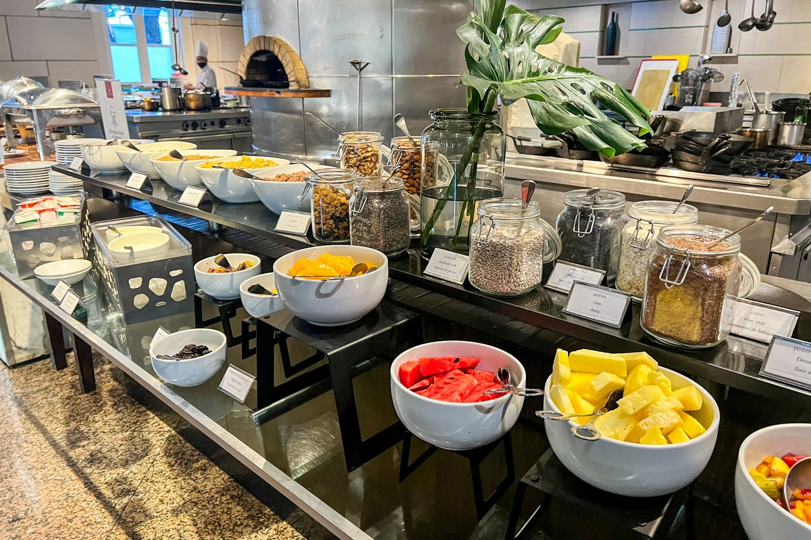Breakfast provided a variety of hot and cold options. If you want healthy fare, there's a yogurt bar with plenty of toppings (chia seeds, walnuts, fruit), but there are also fresh pastries and desserts.