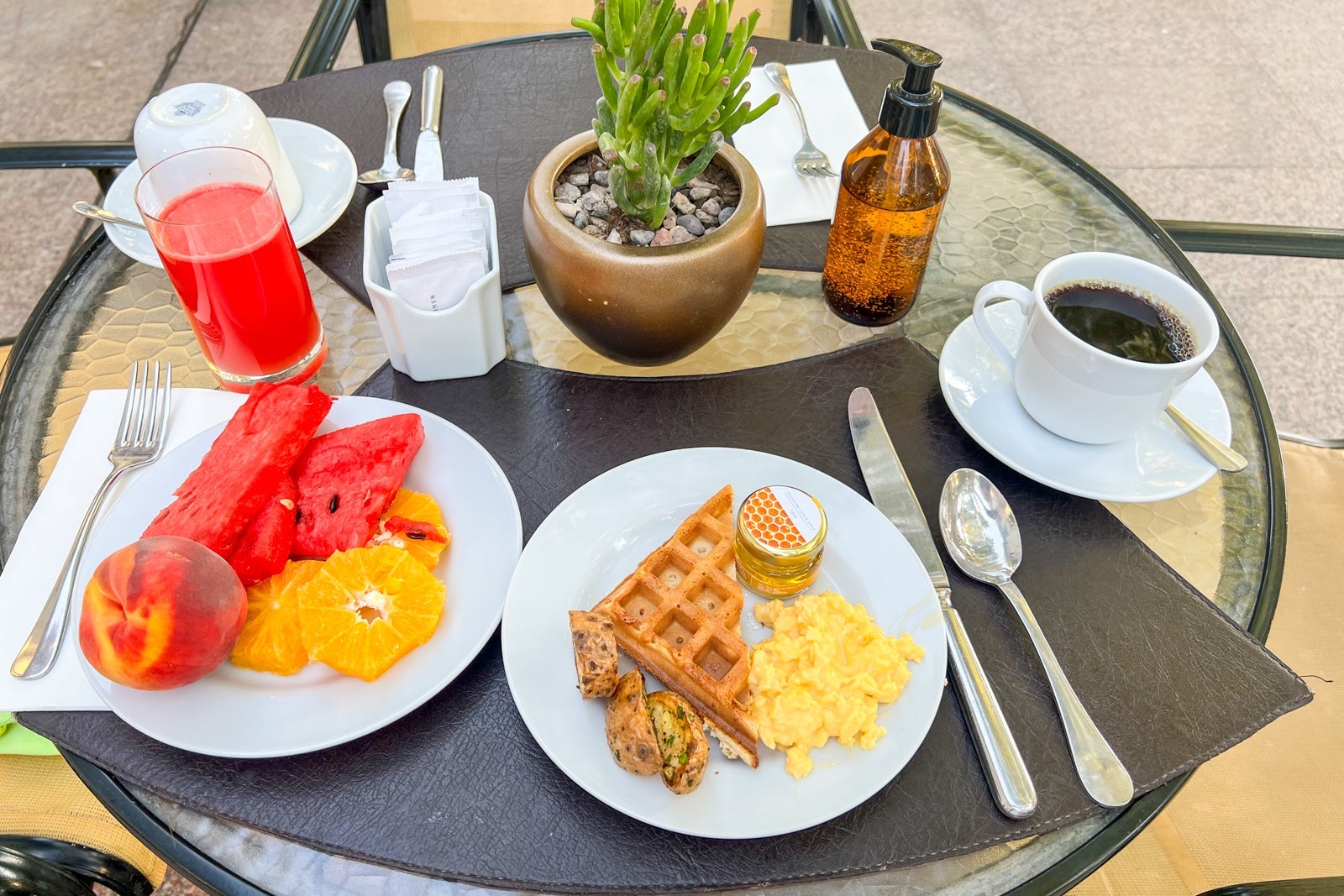 I loved starting my days with breakfast on the patio, enjoying the fresh fruits and juices, made-to-order eggs and — I'll say it again — those fluffy, mouthwatering waffles.