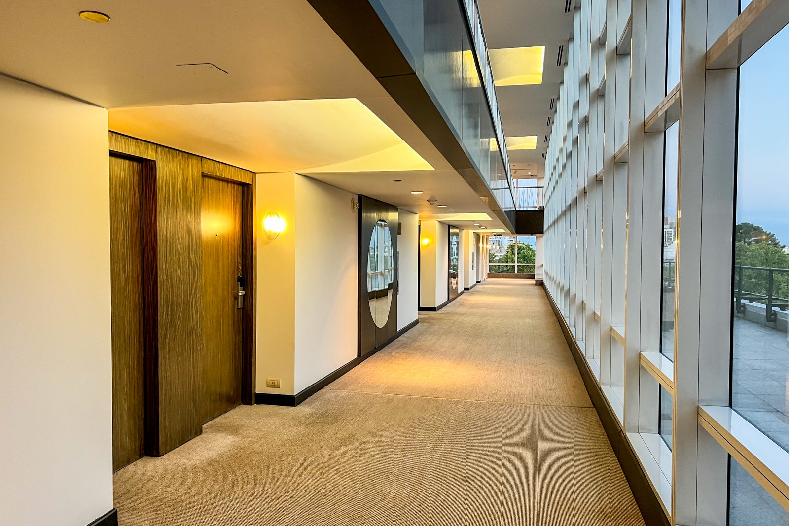 The hallways leading up to my room were wide, and the large windows provided great views of the city, which was nice because the corridors themselves were a bit bland.