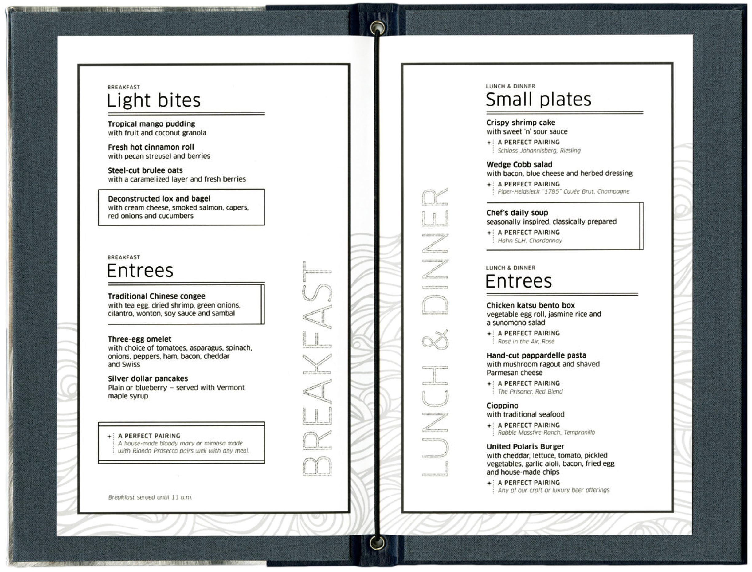 The food menus are fairly limited, but the drink options certainly aren't — you can of course request any other cocktail you'd like, too.