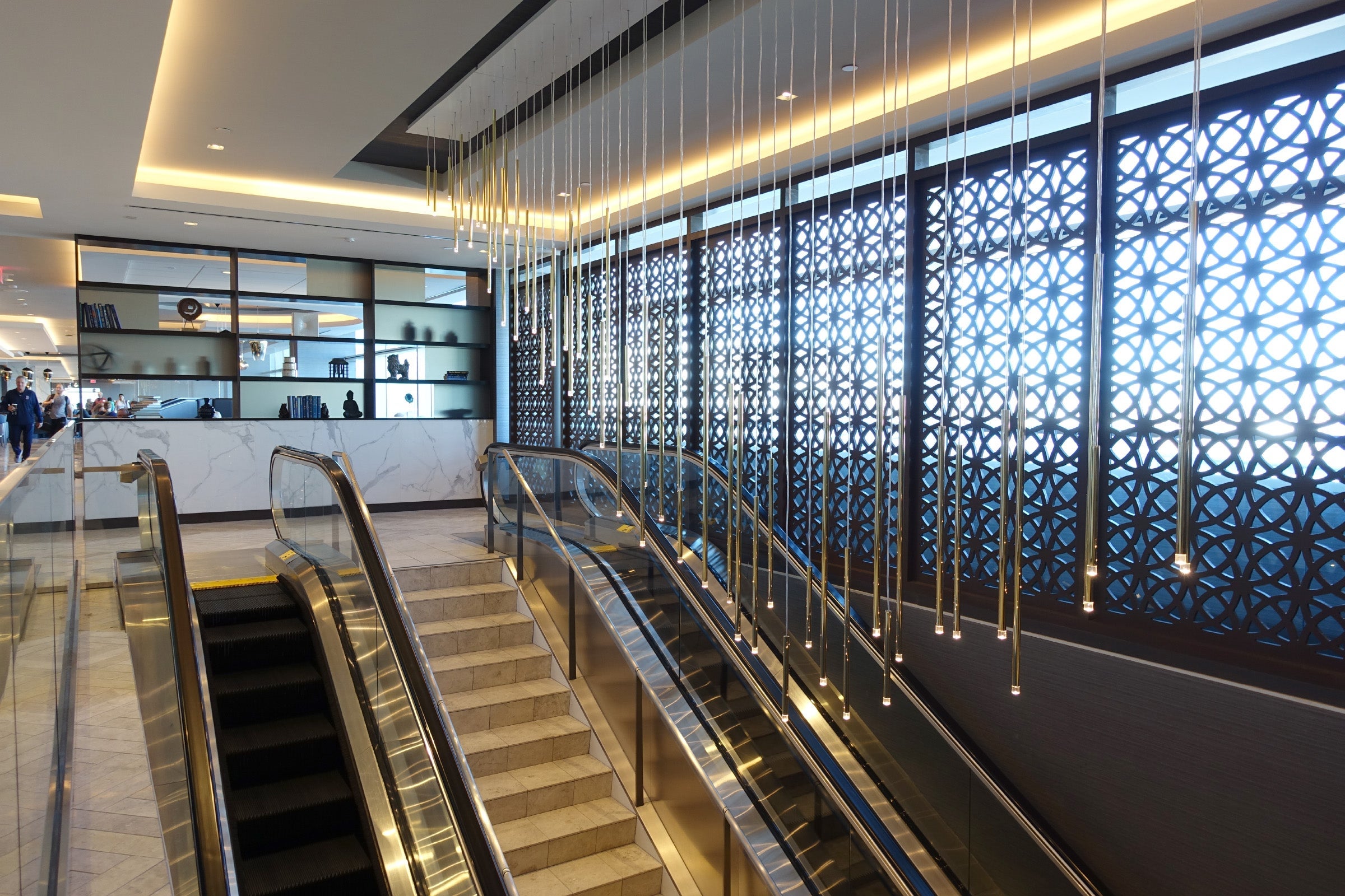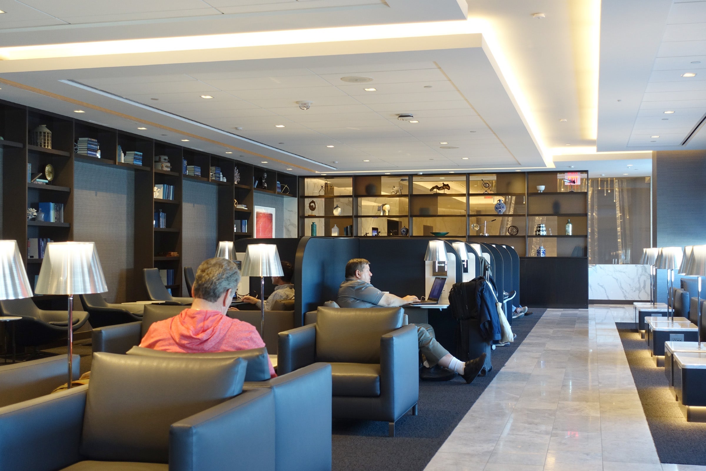 The lounge is located in the international departures area, near gate G93, just on the other side of the security checkpoint. It's open from 6:30am until 1am every day.