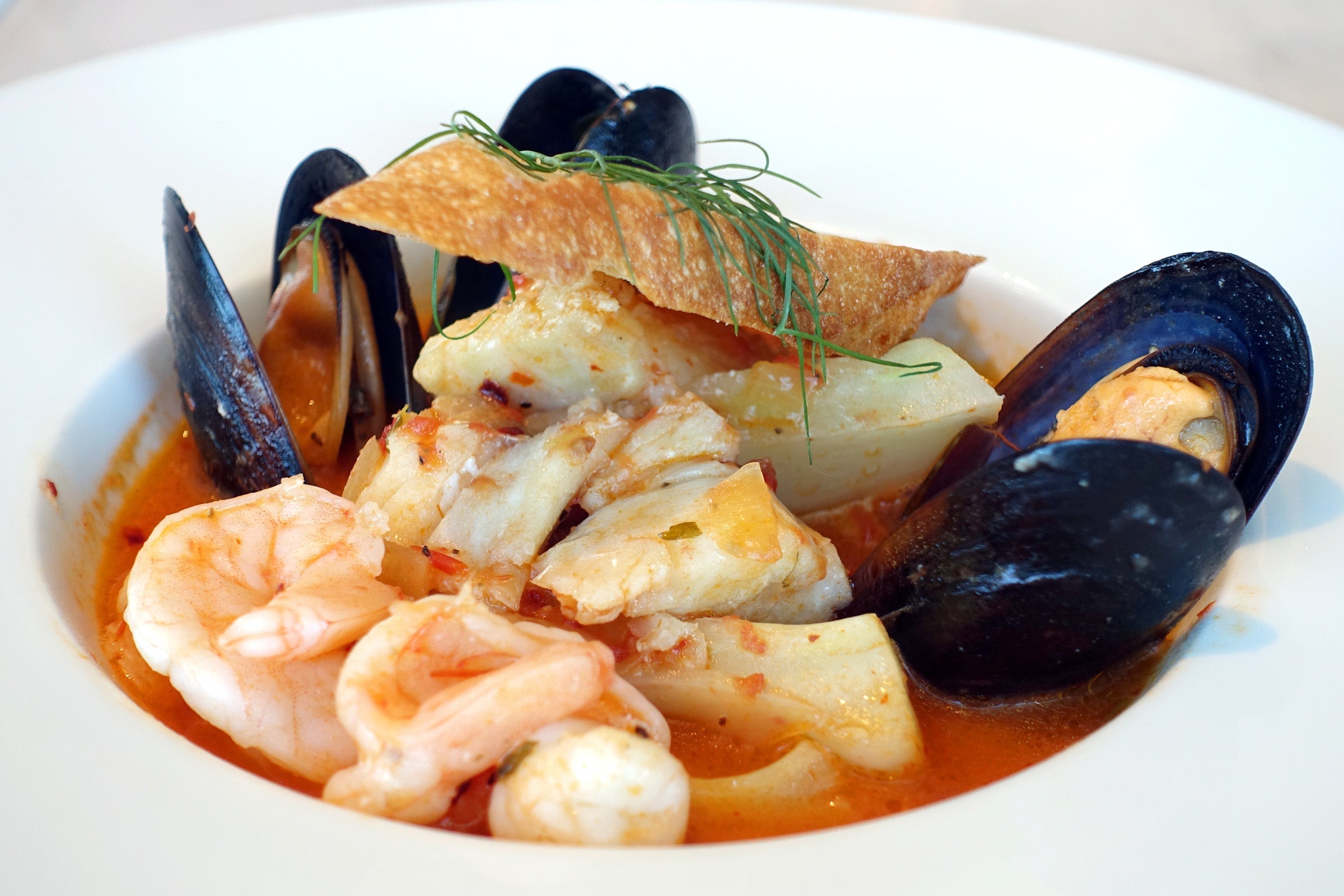 Next I had the San Fran-style, a local fish stew with mussels, shrimp and chunks of fish. I wasn't planning to drink, but I saw a bloody Mary on another table and asked to have one myself. It was at the table in less than two minutes.