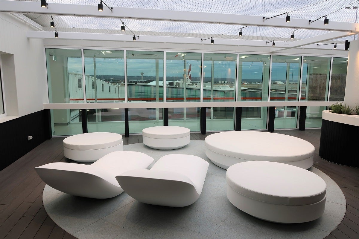 But, if you're flying economy, there's still a way you can get some fresh air before the flight. There's an outdoor patio right next to the departure gate 20 where you can lay out and soak up a little sun: