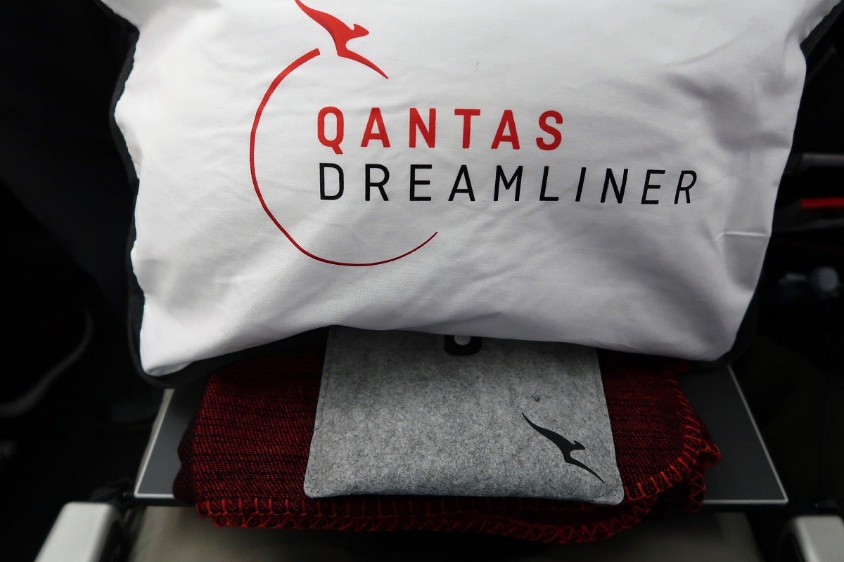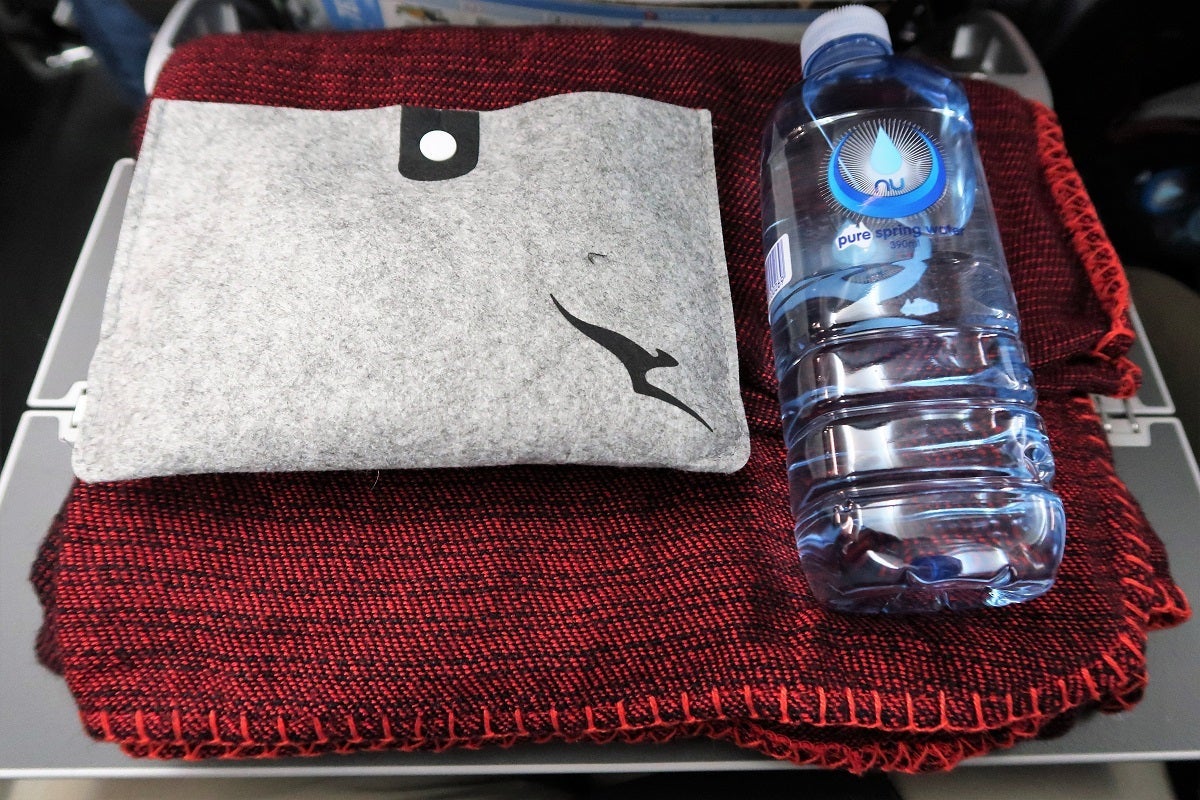 While the thought is appreciated, Qantas went a bit overboard with the size of the economy amenities. There's barely enough room for passengers in the seats, much less for a massive pillow. You can't use it for lumbar support without reducing your legroom to Spirit Airlines levels and it's too big to use behind your head when reclined.