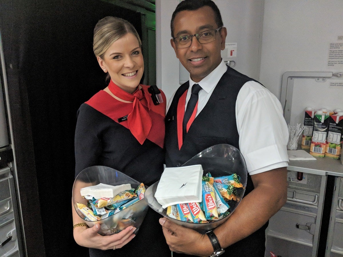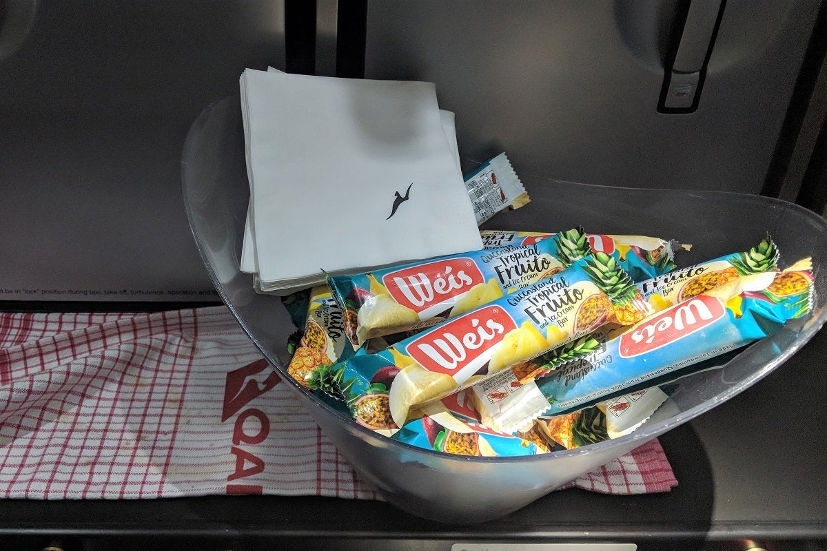 The cabin crew also passed through the cabin mid-night to hand out fruit-flavored ice cream bars.