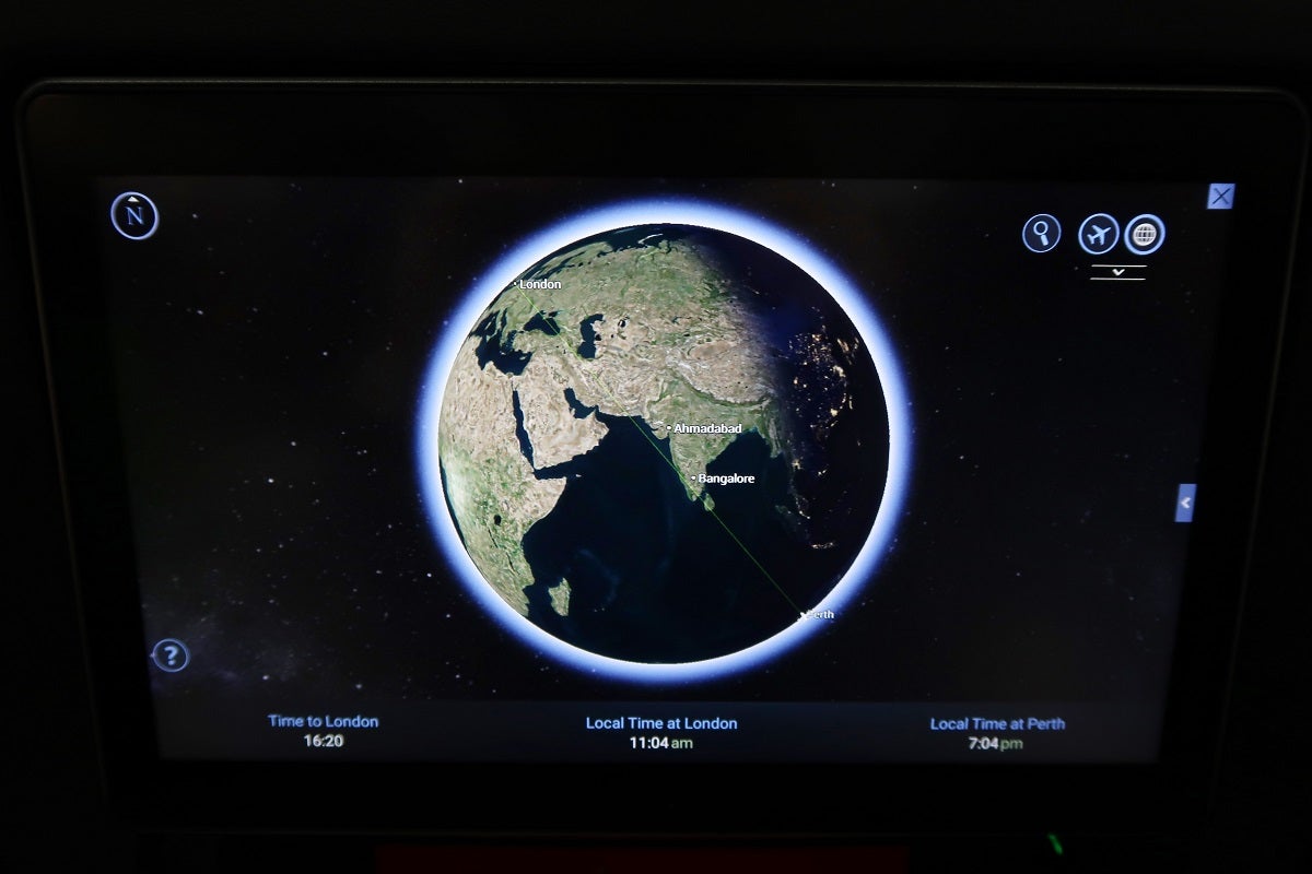 The westbound flight from Perth to London seems perfectly scheduled for sleep. The flight departs Perth at 6:45pm. This gives the crew enough time to serve drinks and dinner before the lights are faded out for the night.