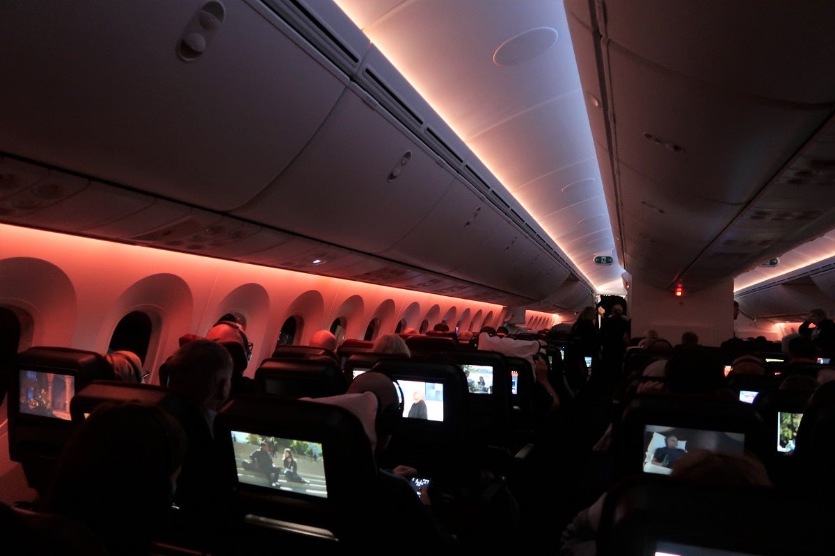 Most of the 17-hour flight occurs with it being dark outside, so there's not the trouble of having to simulate an artificial night. Instead, the crew can leave the lights off for an extended night, giving passengers a chance to sleep much of the journey. Passengers who are unable to sleep have days worth of entertainment in front of them and plenty of snacks and drinks available in the galleys. The lights are only turned back on shortly before the 5:05am scheduled arrival time.