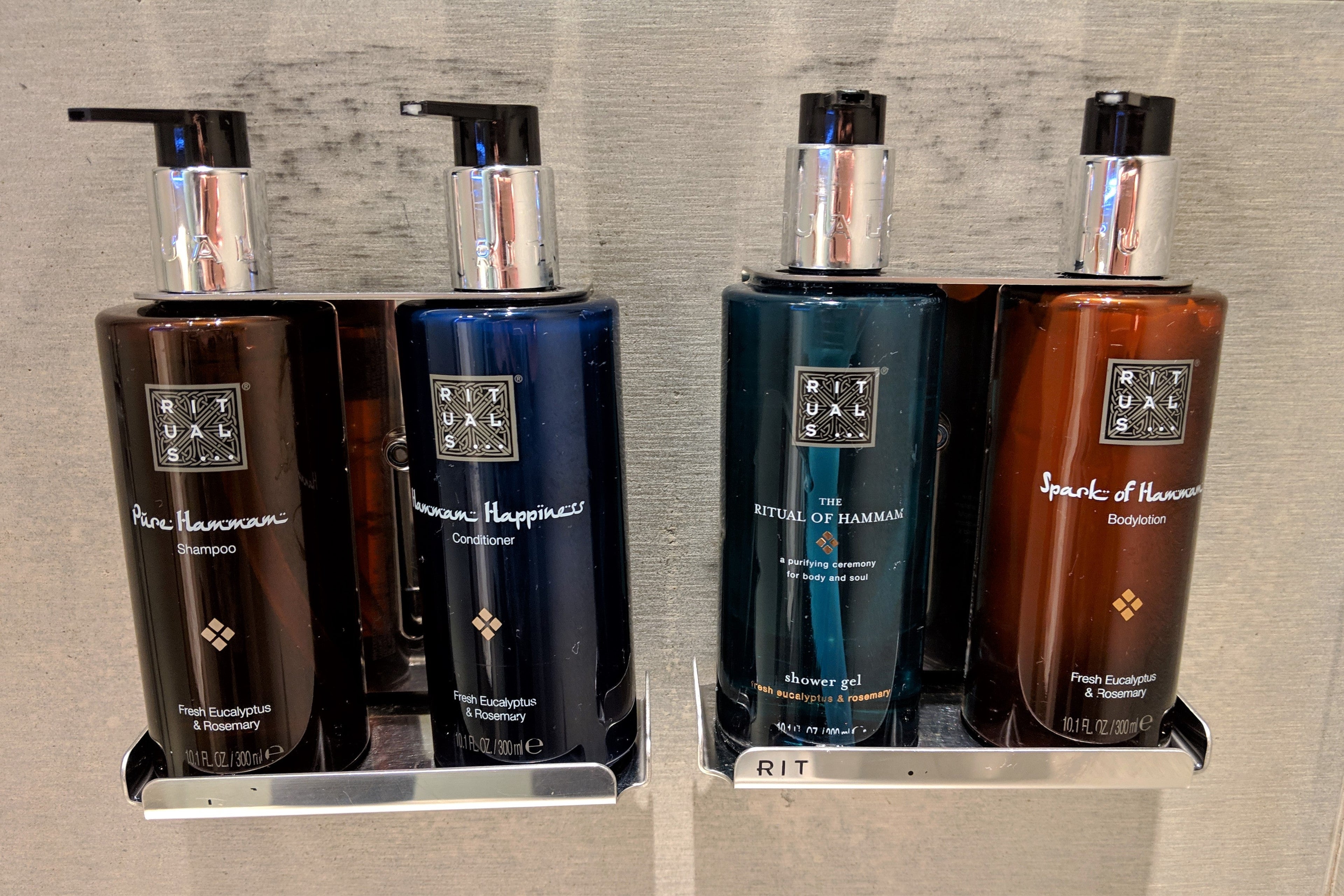 A bath towel and floor mat are provided in each shower room and there's shampoo, conditioner, lotion and body wash in each shower cabin. The showers are first-come, first-served, but there's usually an attendant nearby who will replace towels and reset the shower room shortly after each use.