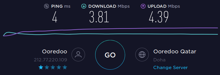 There's no dedicated lounge Wi-Fi, so passengers are instructed to connect to the airport's free Wi-Fi. You'll want to connect to the "HIAQatar Complimentary Wi-Fi" network, since this network doesn't require you to enter your flight confirmation details or phone number. The connection wasn't very strong in the lounge, but a speed test showed 4 ms ping, 3.81 Mbps download and 4.39 Mbps upload.