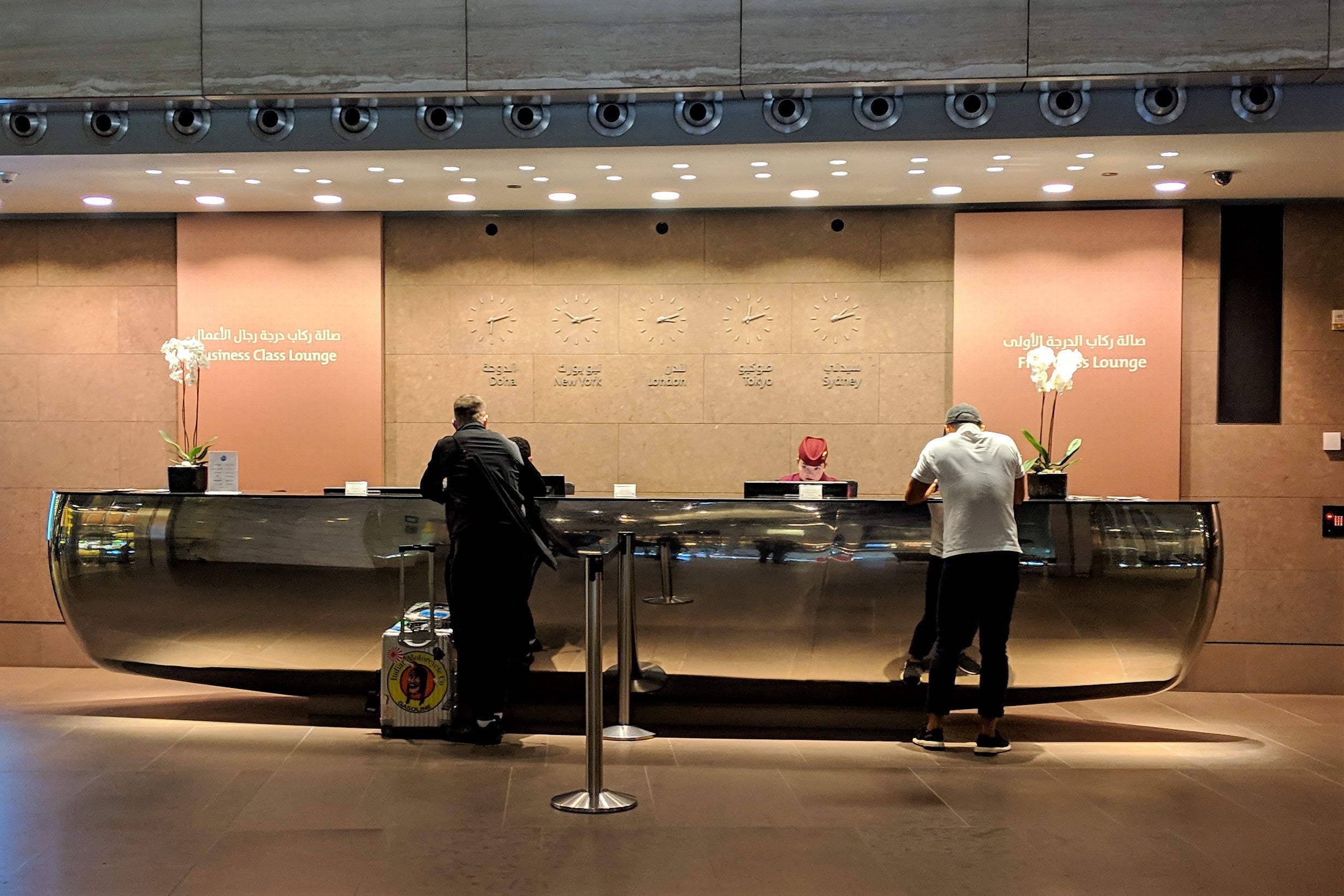 The two lounges for Oneworld elites who aren't flying in business or first class share one check-in desk. However, agents are usually checking and scanning boarding passes at the bottom of the escalator from the atrium, so there's no need to approach the formal desk unless you need assistance with your flights.
