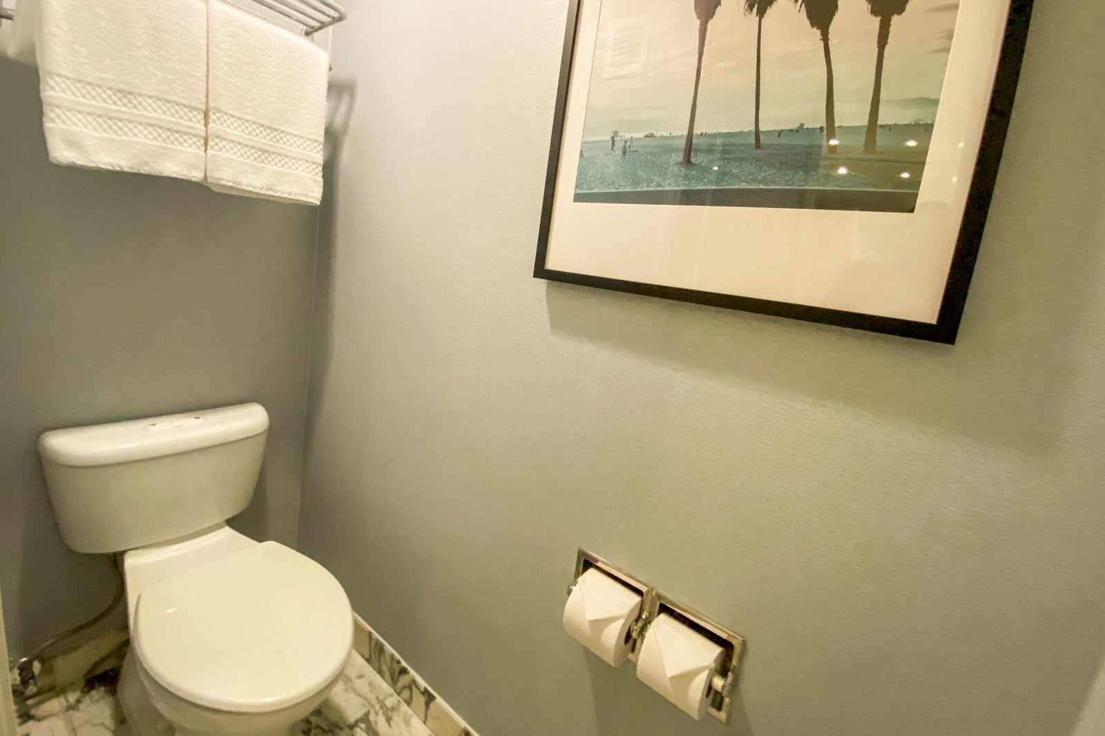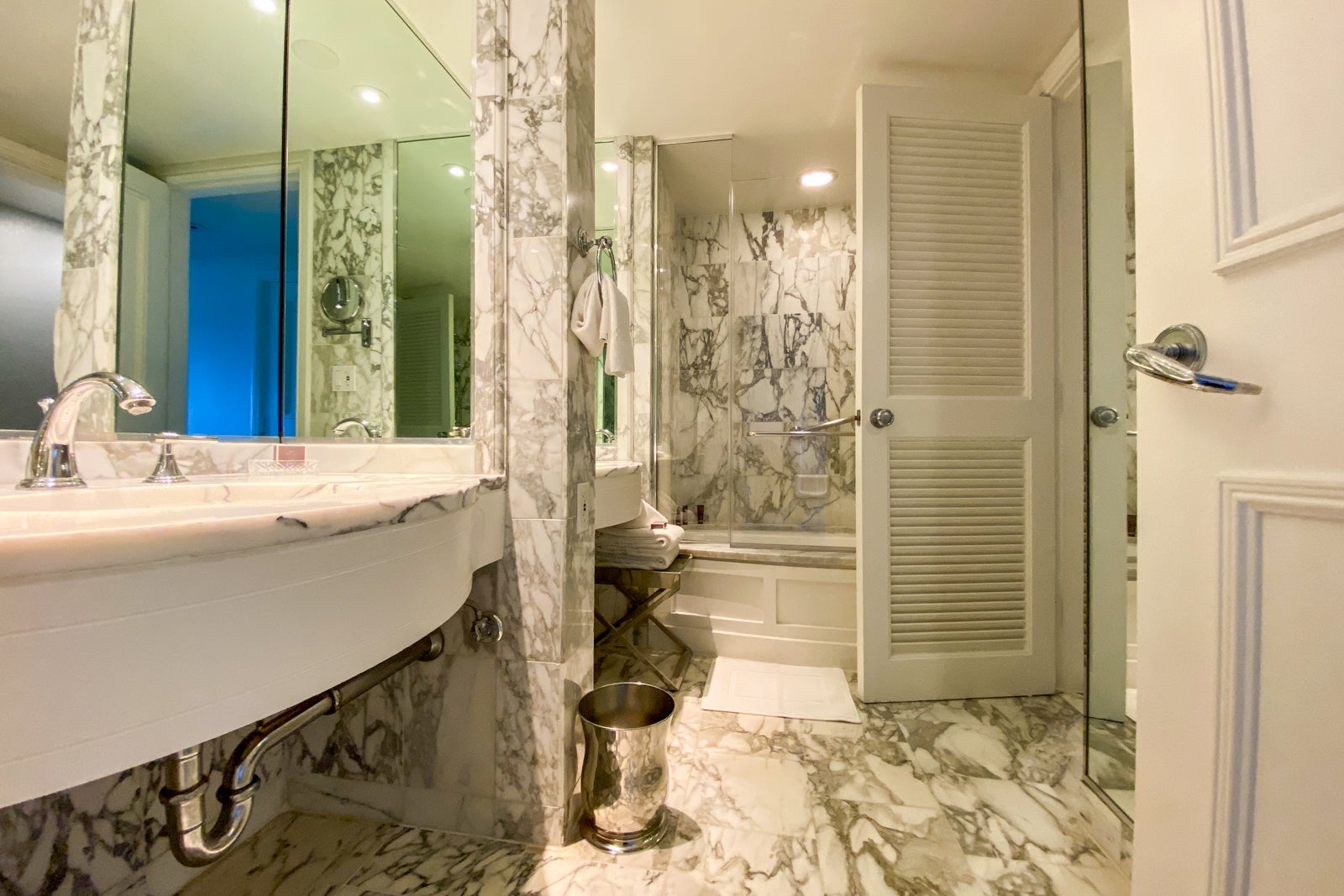 The all-marble bathroom was clean, though there was only one set of towels. Luckily the housekeeping cart was down the hall, so I was able to get two extra sets pretty easily.