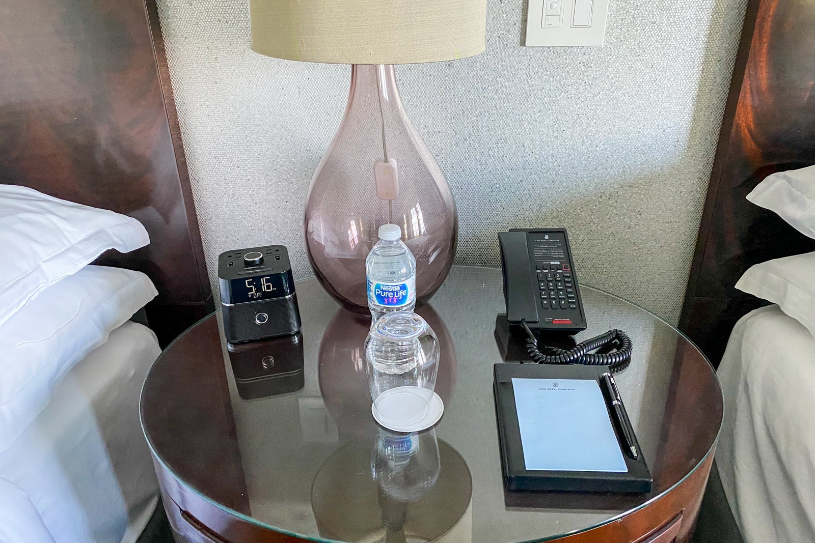 View aside, the room itself was pretty underwhelming, resembling a Sheraton more than a Ritz-Carlton. There were two full beds facing a desk and TV. The furniture looked rather cheap and the mattress was a bit springy and uncomfortable. The pillows weren't fluffed, which is a minor detail and can be probably be attributed to the housekeeping shortage.