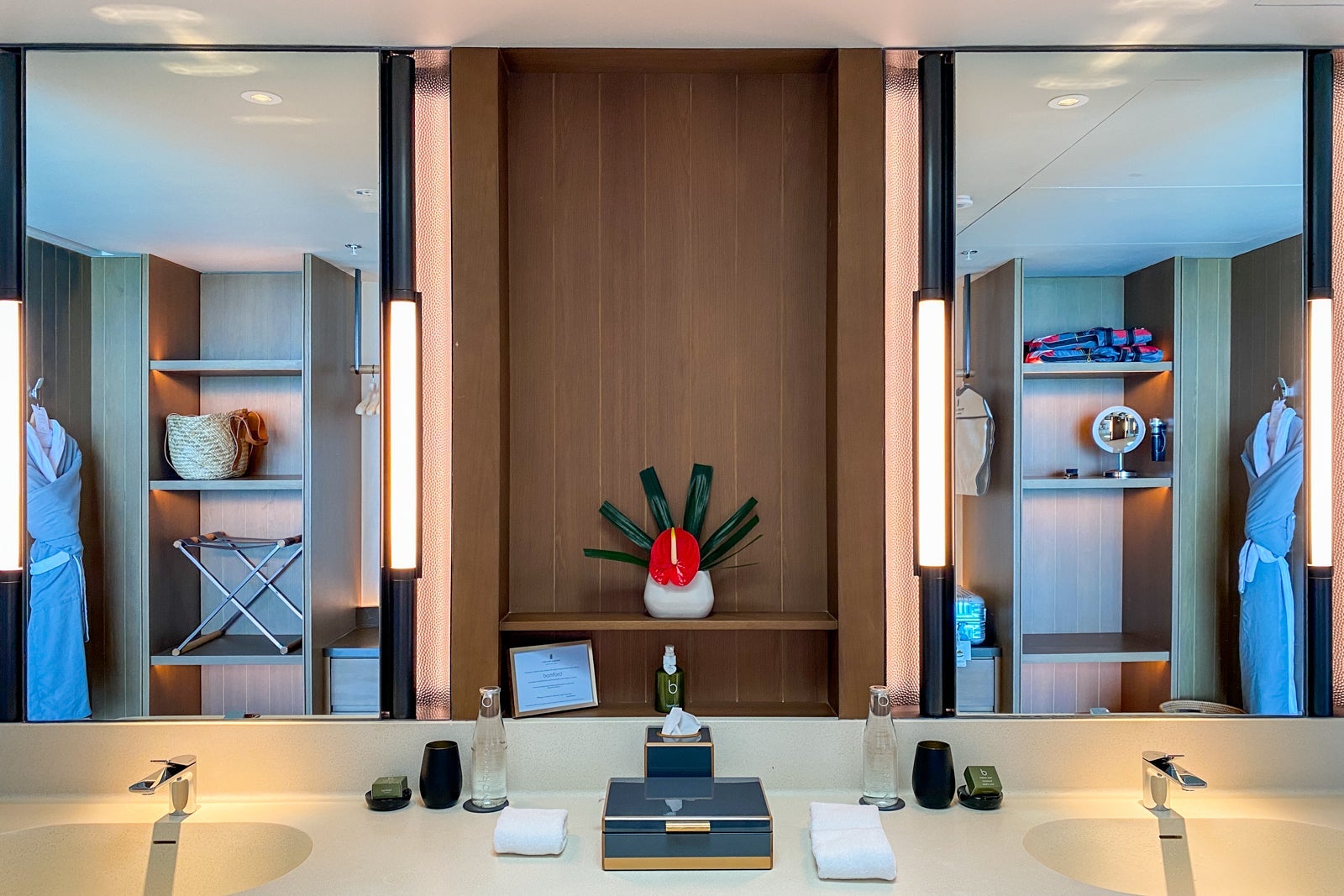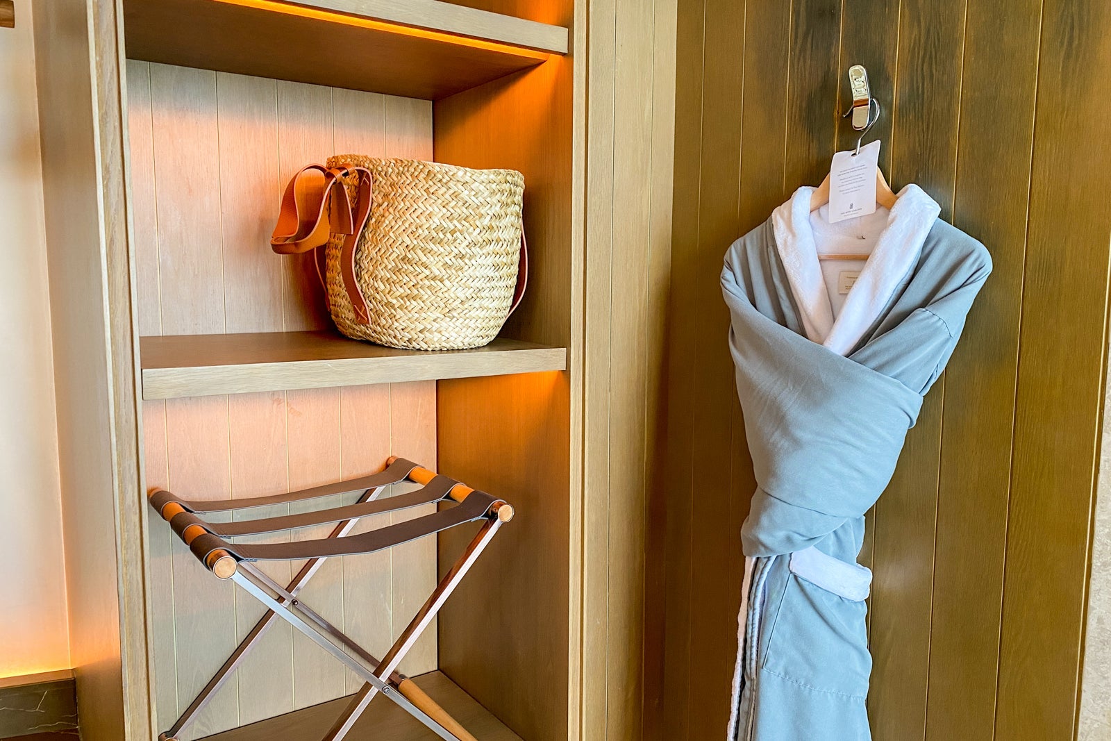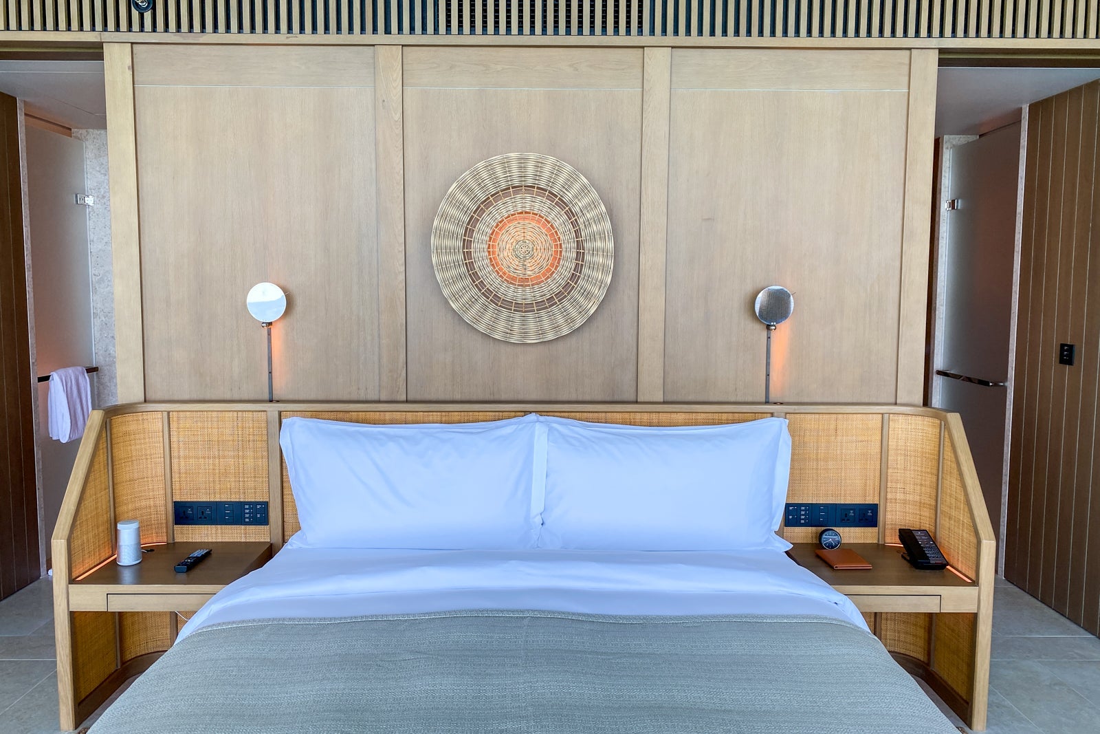 A plush king bed took up the center of the room, with bedside access to automatic controls for the blackout and sheer blinds. However, I kept my blinds fully up, letting the sunrise and sounds of the ocean wake me every morning.