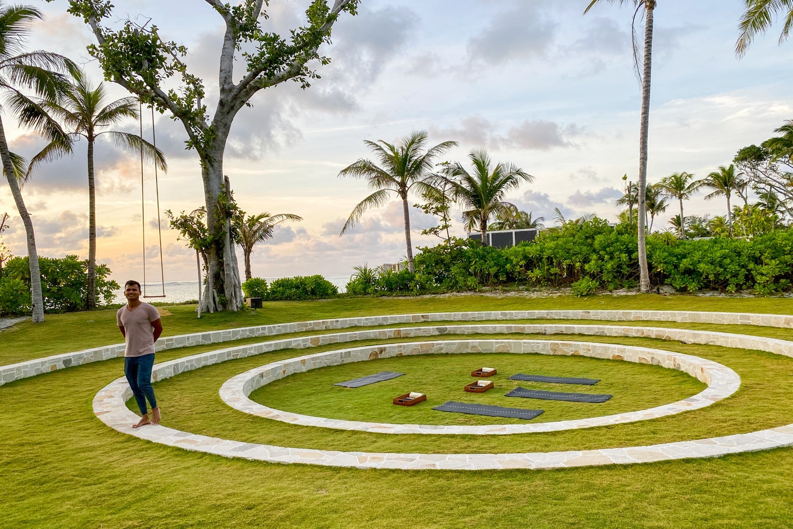 Each morning, I woke up to practice sunrise yoga, a complimentary activity on the Ritz calendar of events. Maneesh was an expert instructor who gave personalized attention.