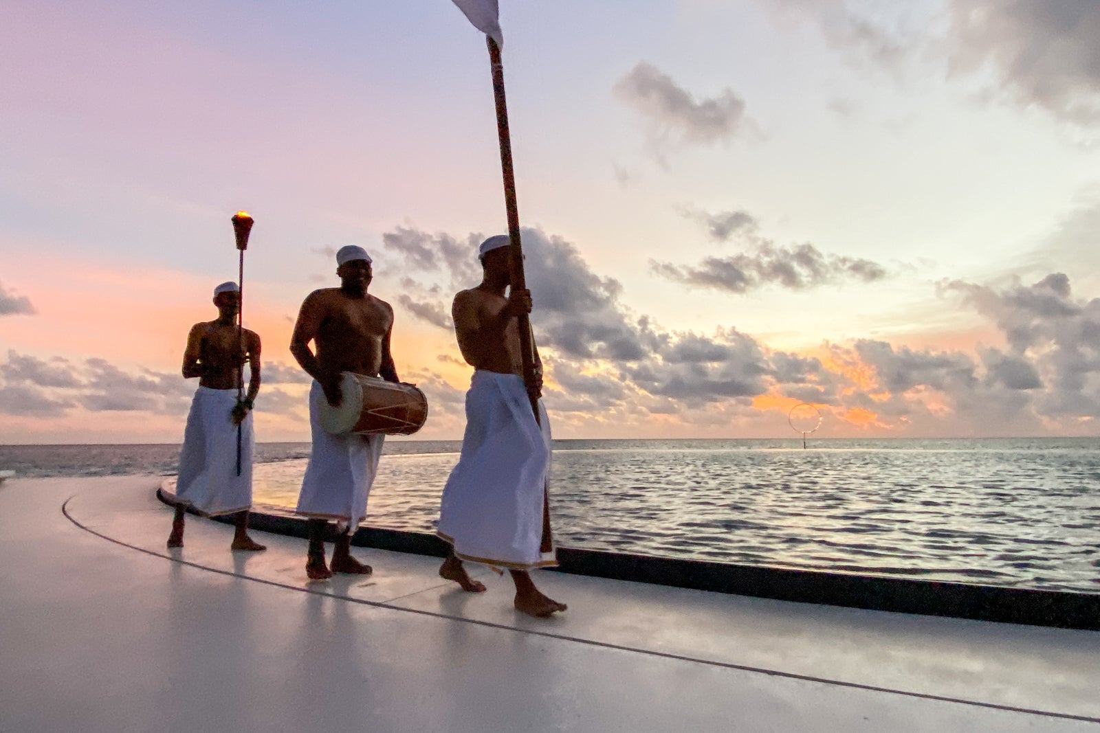 I was greeted by multiple staff members at the ferry arrival pavilion, with one staffer blowing a traditional Sangu horn, a shell signifying an important piece of ancient Maldivian culture. Naturally, it's ceremoniously blown to announce a special arrival, or in this case, every new resort guest.