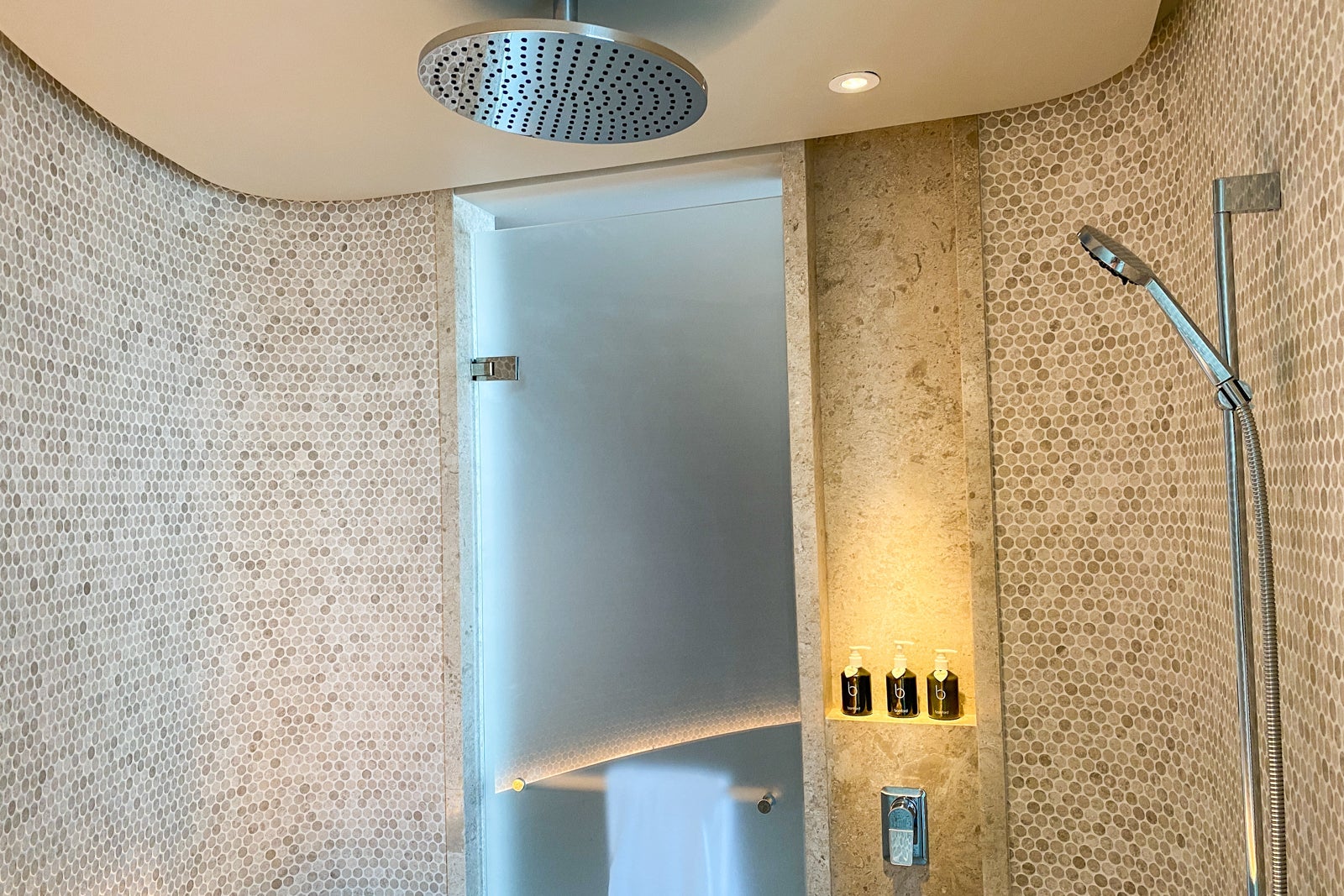 Next to the gym was the steam room and sauna, separated by gender. The design was, once again, gorgeous. For COVID-19 protocols, the facilities must be booked in advance -- and you'll get the entire place to yourself.