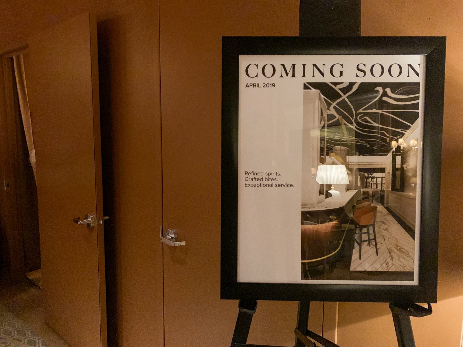 As I previously mentioned, the bar and restaurant were under renovation during my stay. The staff (and the sign that was posted outside the space) told me the new spaces would be open in April, but the hotel's website now says that they'll be opening in May.
