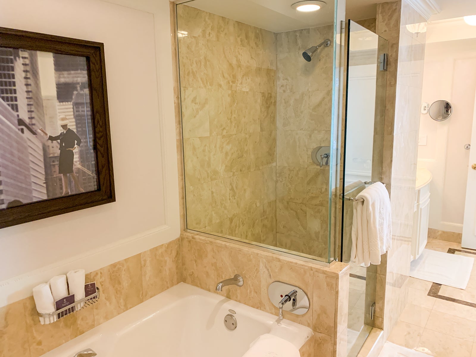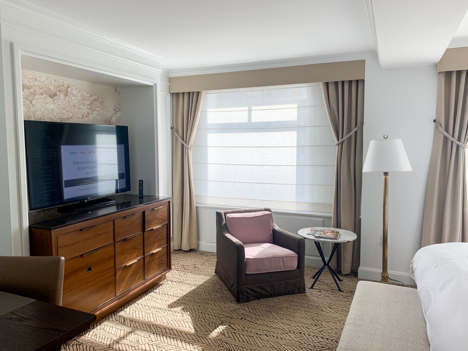 I was very impressed with the way the hotel presented old-school New York glamour mixed with modern, cozy and practical rooms. And though I wasn't a fan of the bathroom, the renovation was a success. The service we received throughout our stay was also exceptional -- I was specifically impressed by the room-service servers who took the time to not just set up our food but also to chat with us and get to know us. Also, each time we entered or exited the hotel, a white-gloved bellman opened the door and greeted us by name. That's definitely something I could get used to!