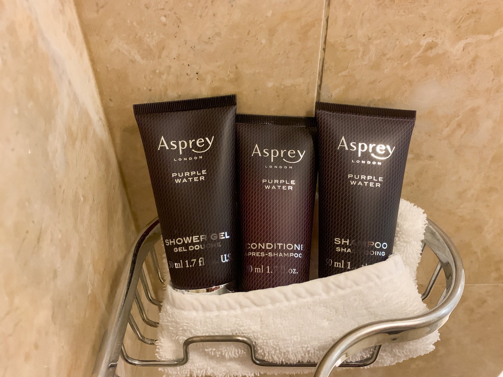 Speaking of the shower, it was indeed small, but the pressure was excellent. I did like that the molding detail was carried through into the bathroom, but I wish they'd gone a little further with the bathroom renovations. As usual, the Ritz had Asprey amenities, which I always love (and try to steal from any Ritz I stay at).