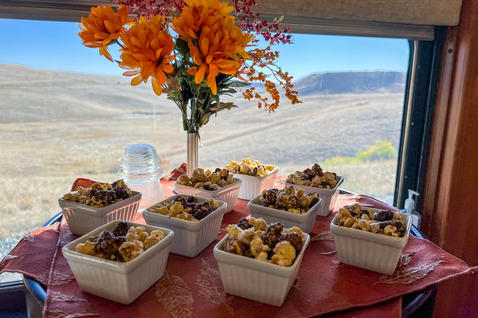 Though Rocky Mountaineer doesn't skimp on the portions for main meals, there are snacks readily available between meals if you find yourself wanting something to nibble.