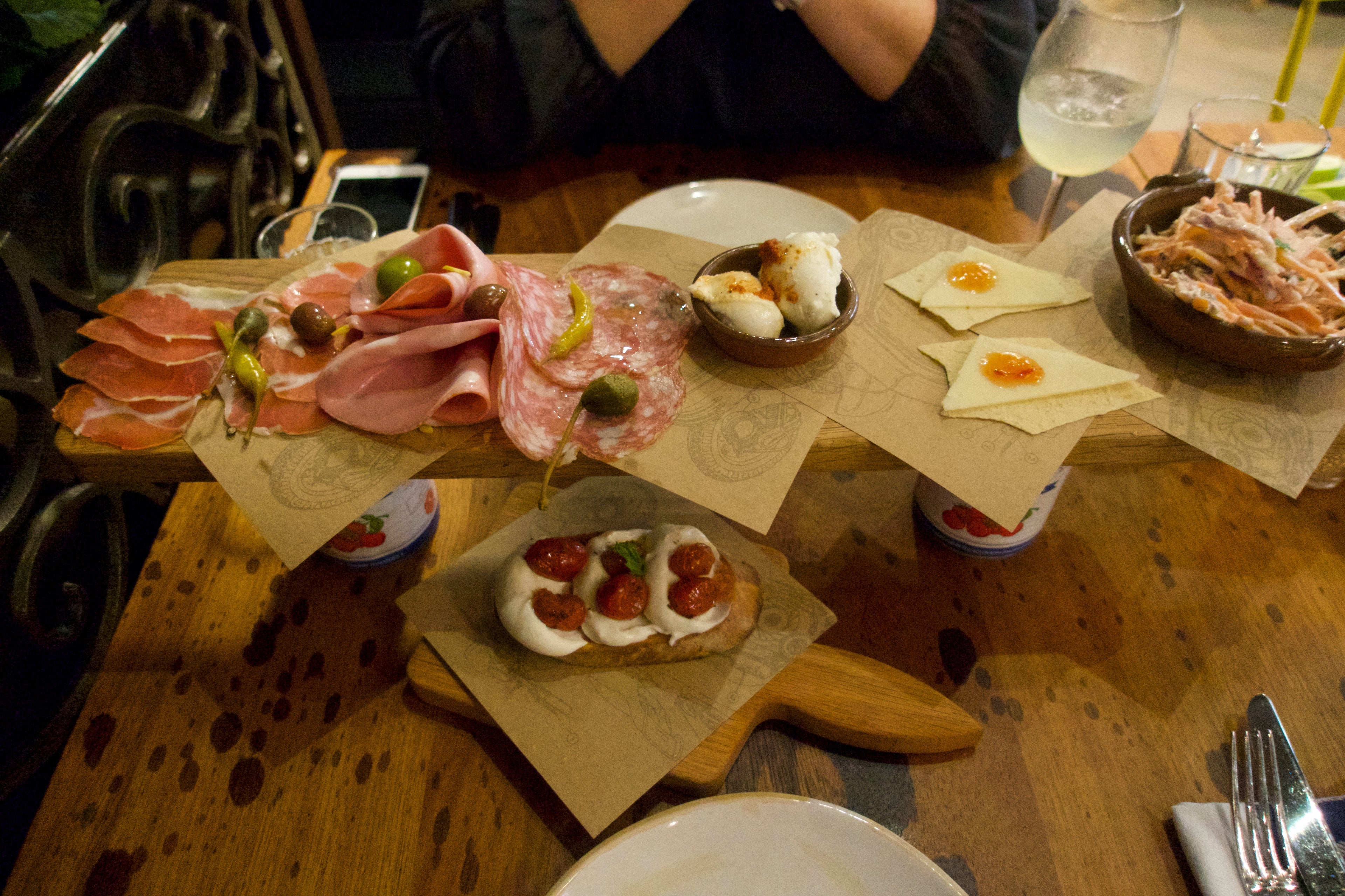 As an appetizer, I picked out a charcuterie board, which was presented atop two cans of tomato sauce. My mom opted for a tomato bruschetta, which was absolutely phenomenal. Seriously, it was some of the best bruschetta I've had.