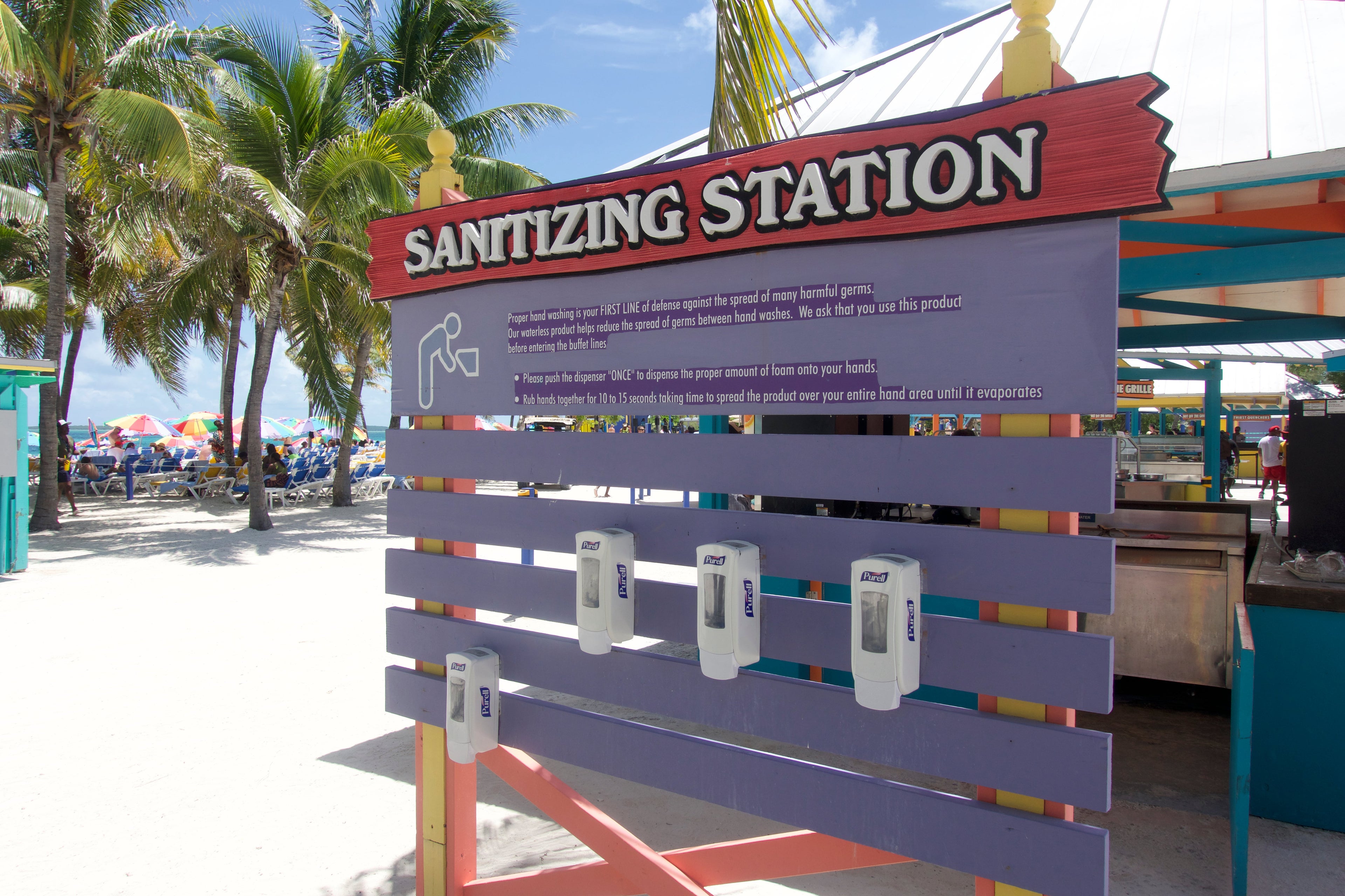Even at CocoCay, Royal Caribbean's private island, there were places to sanitize around the buffet stations.