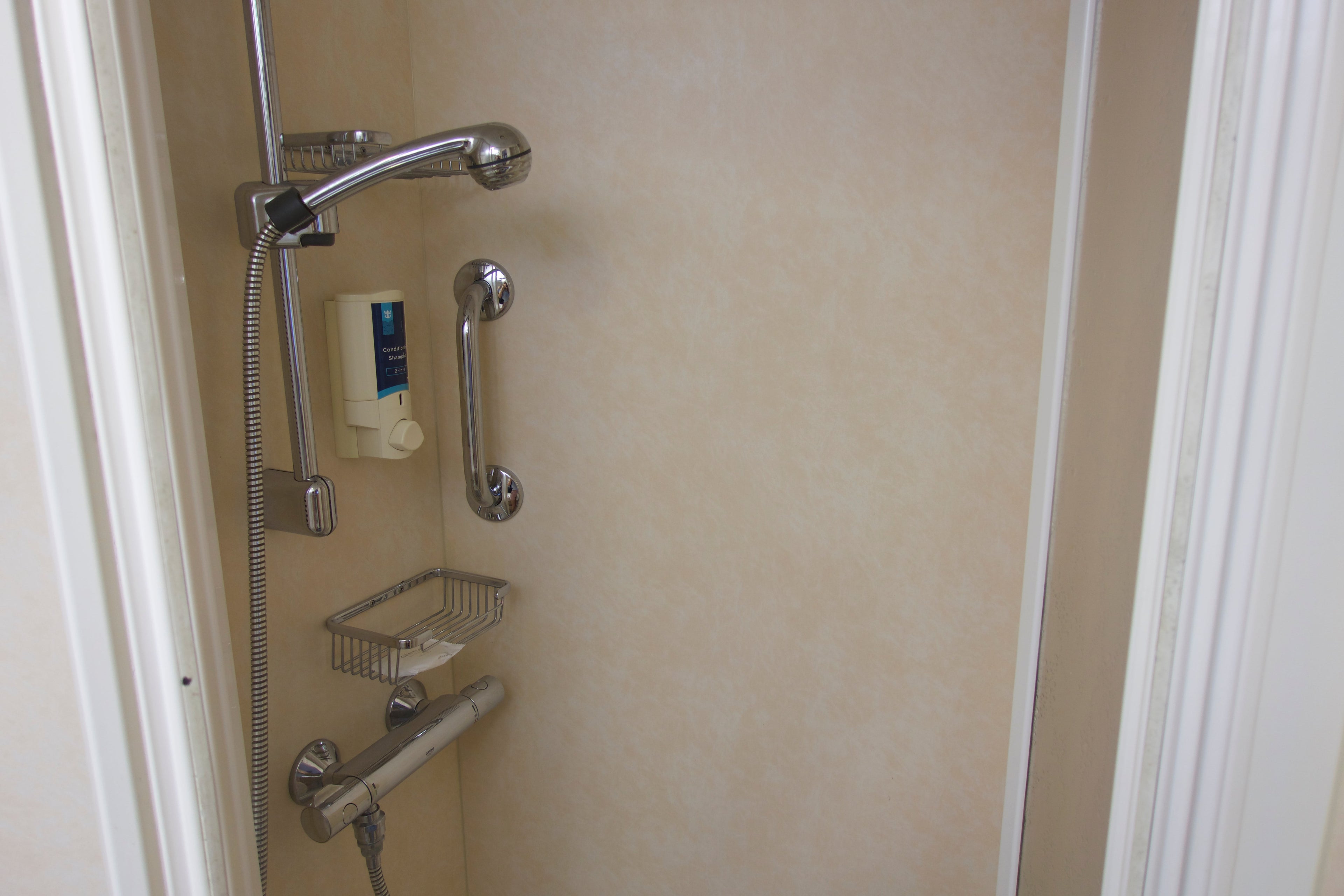 The shower had a handheld shower head, a soap holder, a two-in-one shampoo and conditioner pump and a grab bar. The water pressure and temperature were good throughout the trip.