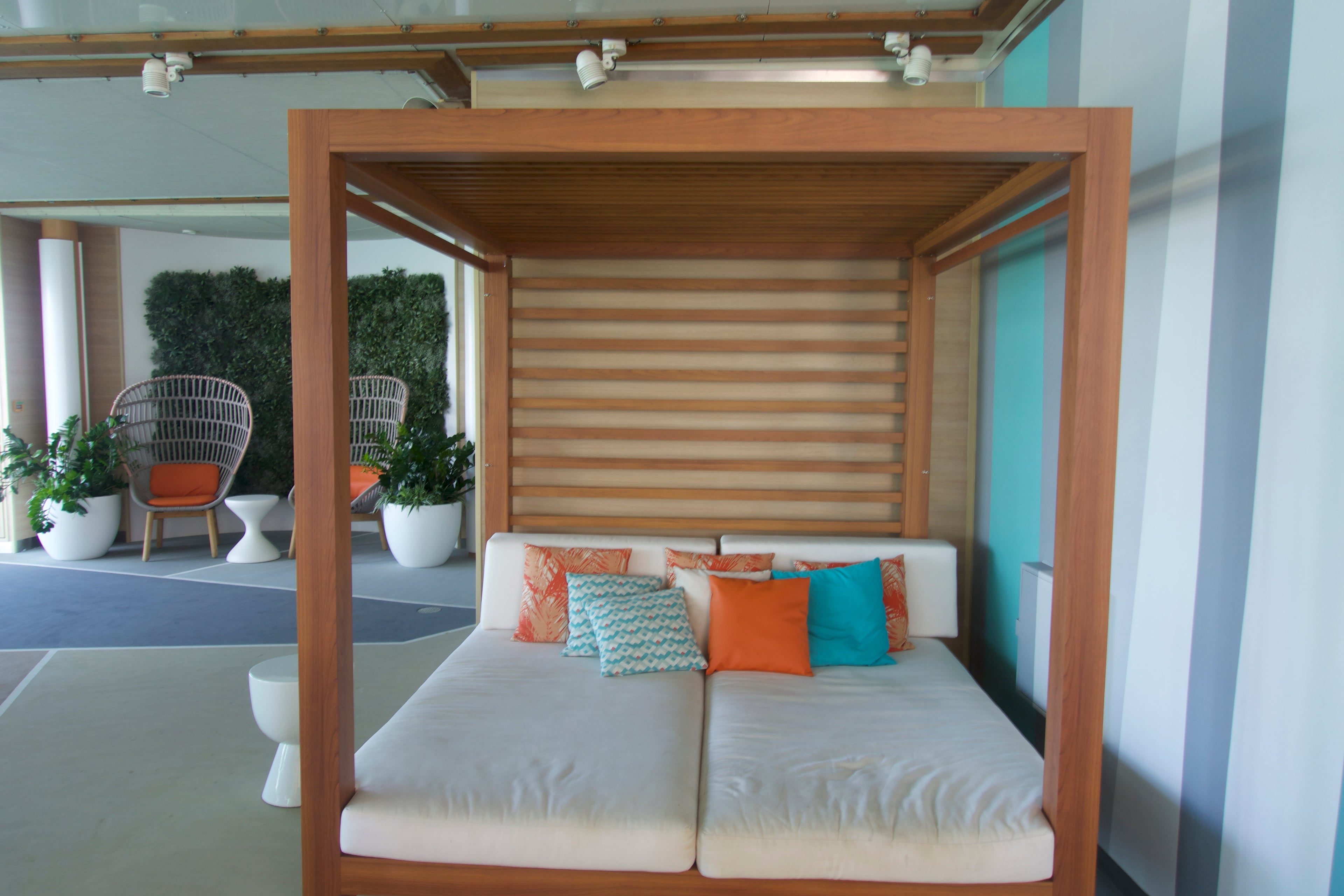 The solarium also had by far the coolest seating arrangements on the ship. Cushioned beds with eight pillows would, at a beach, cost tons to rent for a day, but they were at the disposal of passengers throughout the whole cruise. They were used a lot, but there was always at least one available. Definitely Instagram-worthy.