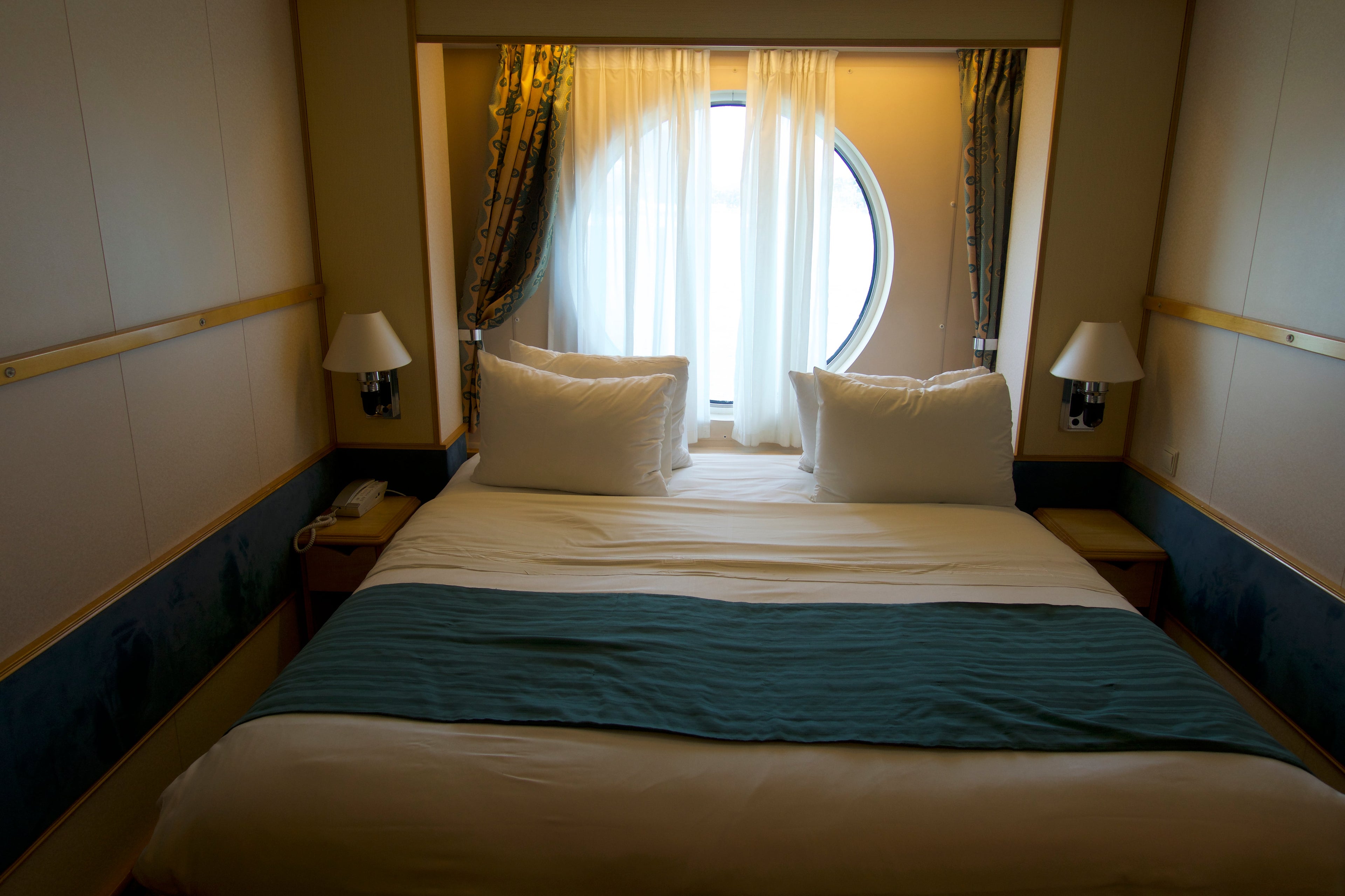 The ocean-view room was what I expected it to be. We were on the third deck, which had decent-sized portholes. Our room also had a lot of mirrors, which seemed to make the small room larger and reflected the ocean views throughout the room.