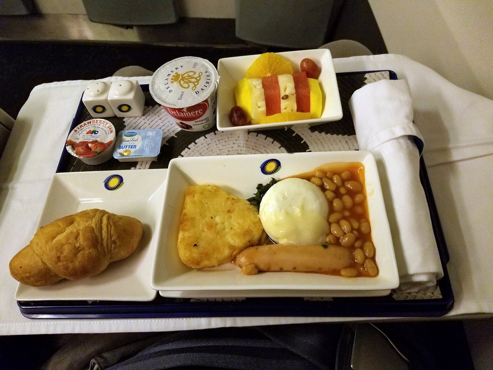 On it, though, I experienced the fastest meal service I'd ever seen on an airplane. We took off at 5:14am, breakfast trays were put in front of us at 5:30am, with a choice between vegetarian or poached egg, and then were collected at 5:40am — a full hot breakfast on a flight of less than an hour! See if any US or European airline will do that for you.