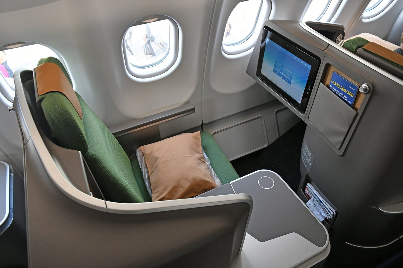 Three bathrooms — one at the front, two at the back — offered a good ratio of people per lavatory. They were otherwise standard-issue A330 bathrooms, kept clean throughout the flight.