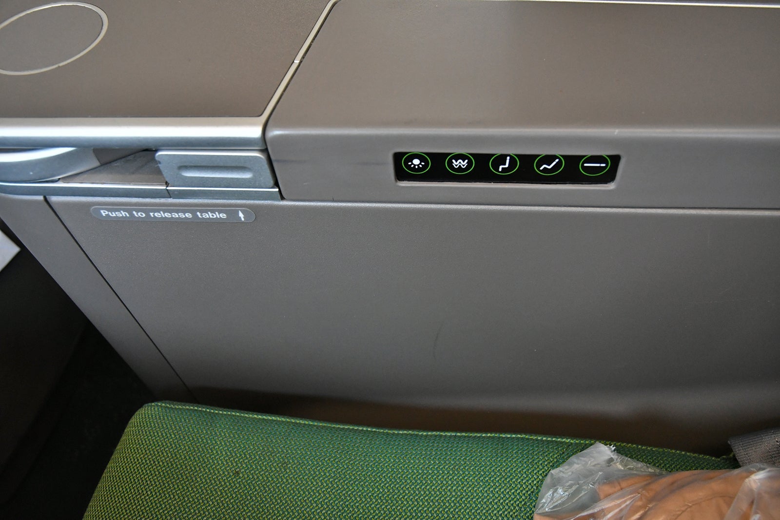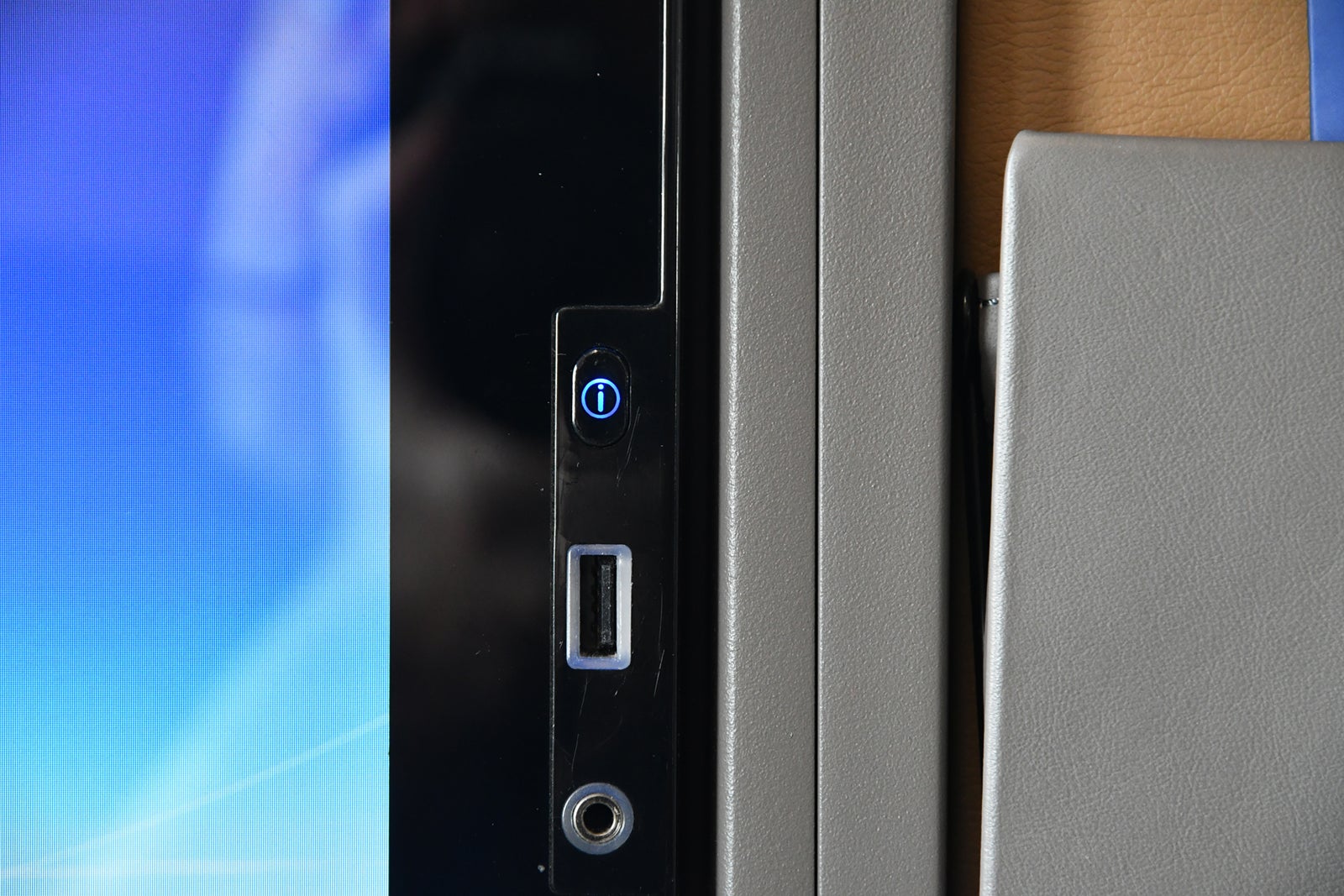 By the IFE monitor, an on/off button, USB powered connection and another headphone jack completed the array of options within reach of the seat.