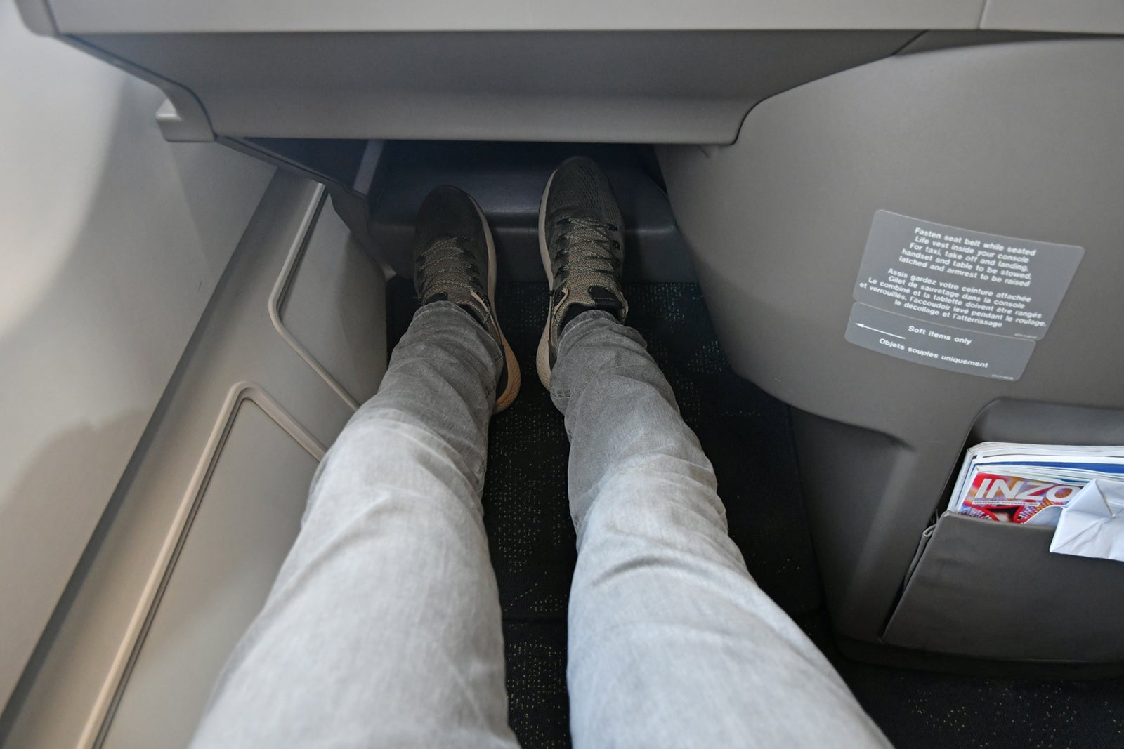As expected with a flat-bed seat, there was ample room for my legs. Many passengers complain of tiny footwells with the Thompson Vantage XL seat, but I didn't feel crammed when lying down in bed mode. (I'm 6 feet, 2 inches.)