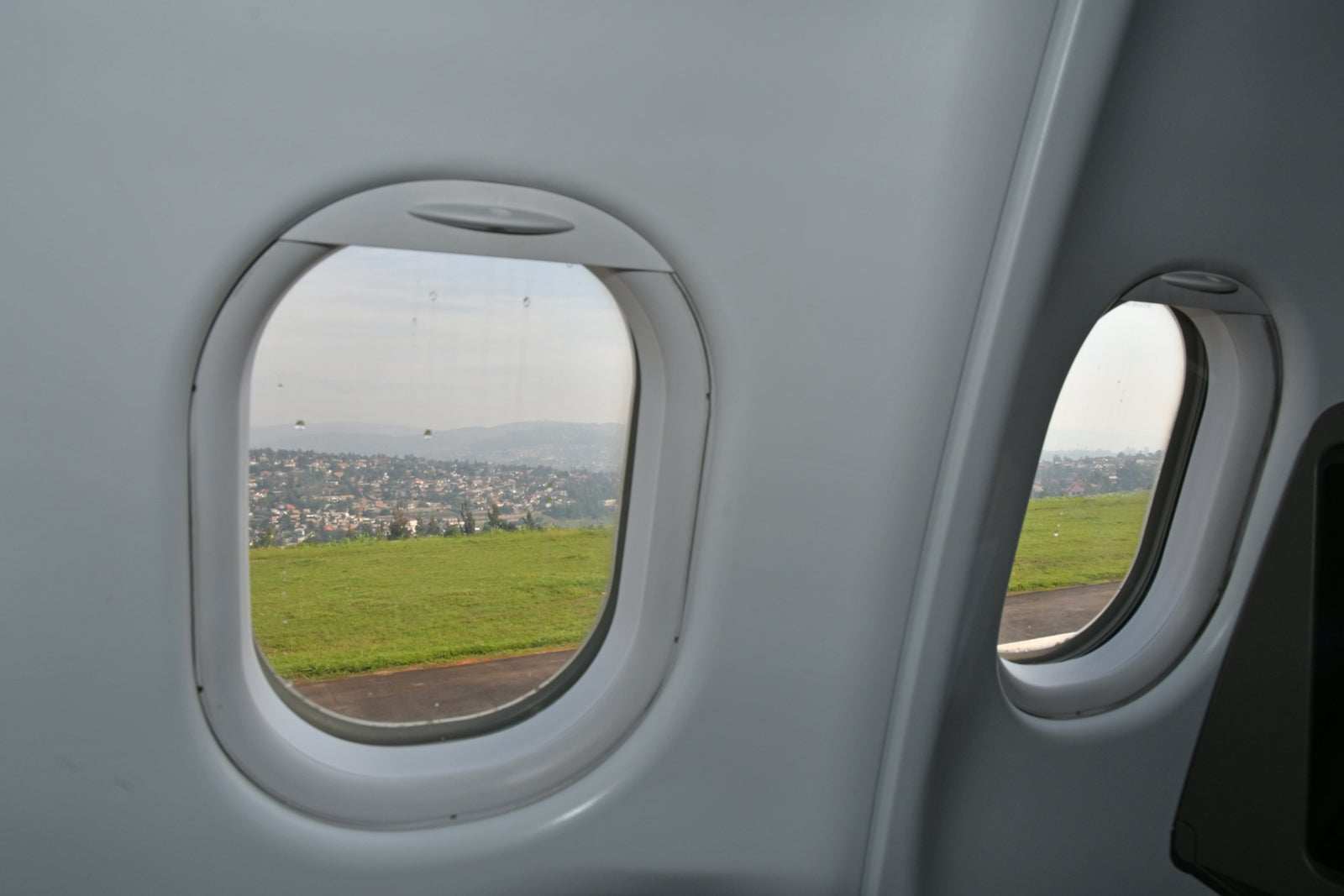 The outside views were much more fun. Two well-cleaned windows per biz seat afforded beautiful views of Africa's varied landscape, from the famously verdant hills of Rwanda ...