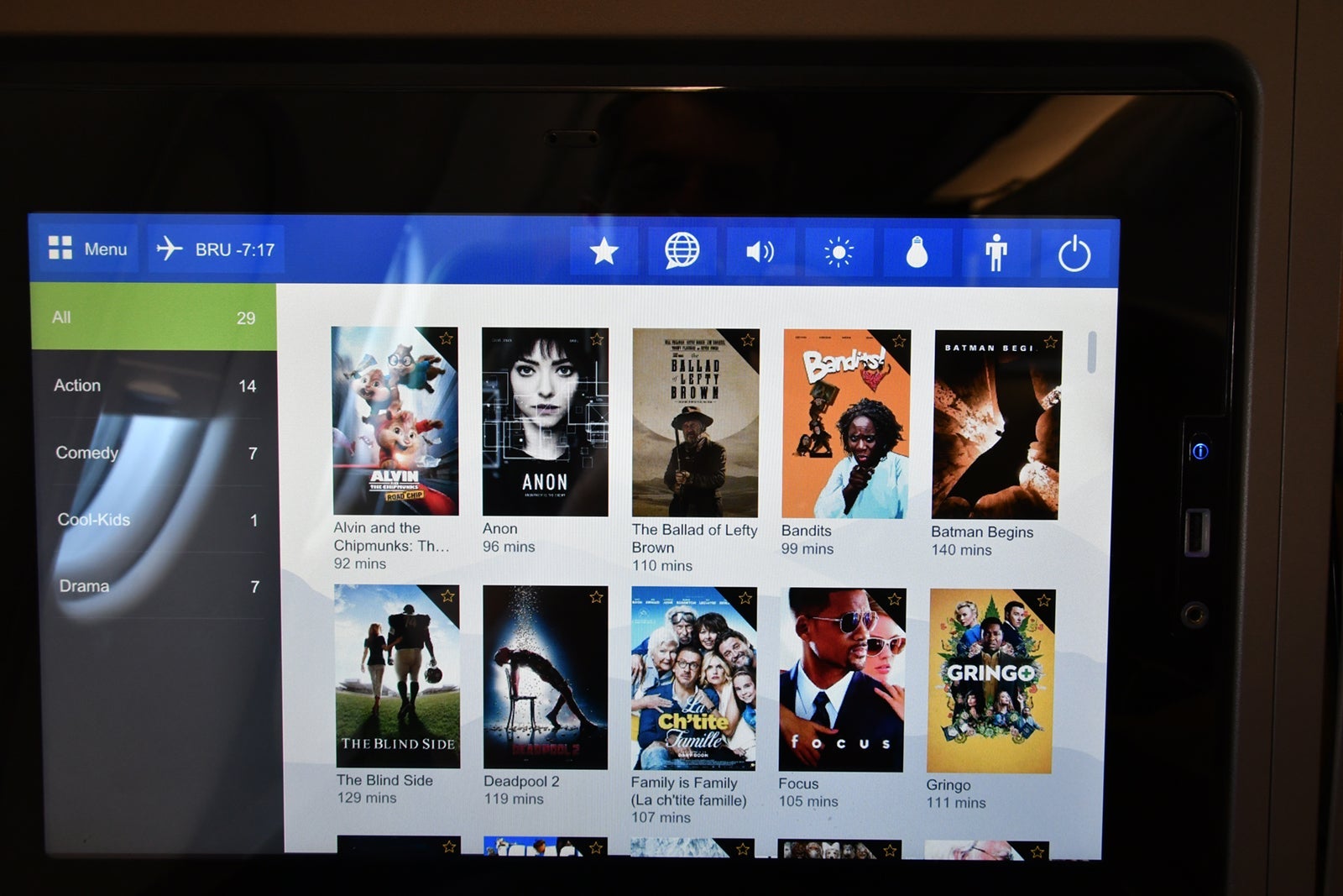When I settled on a movie ("Anon," from a catalog heavy with generic, bland international titles) the IFE kept skipping ahead at random, making it impossible to watch. I had better luck with an elephant documentary, which I managed to watch through, but the gremlins surfaced again when I tried another movie or music from the audio section. By then I had seen the crew reset the system a couple of times, so I did another reset on my own, which finally seemed to fix the problem — with only two hours remaining, though.